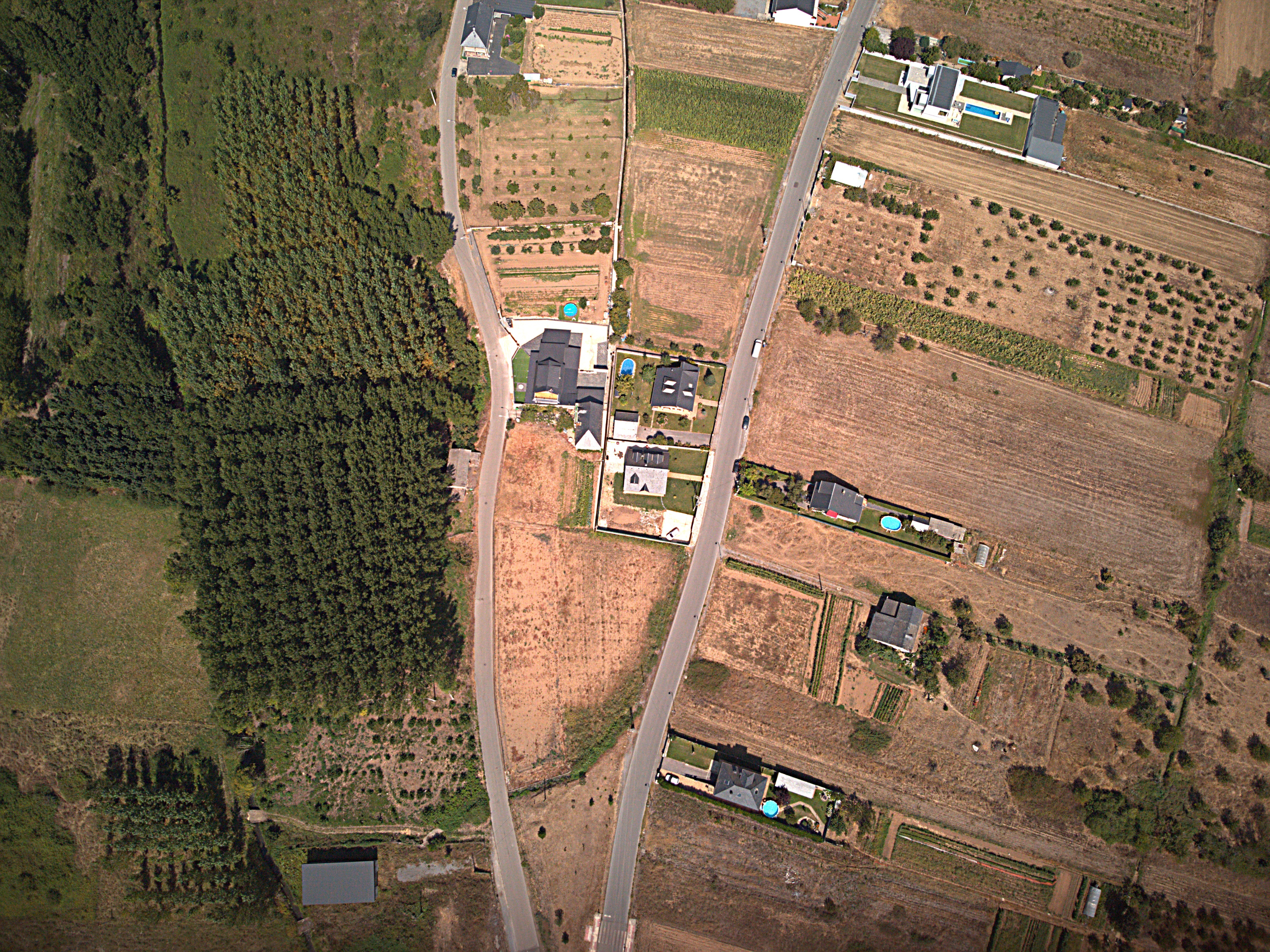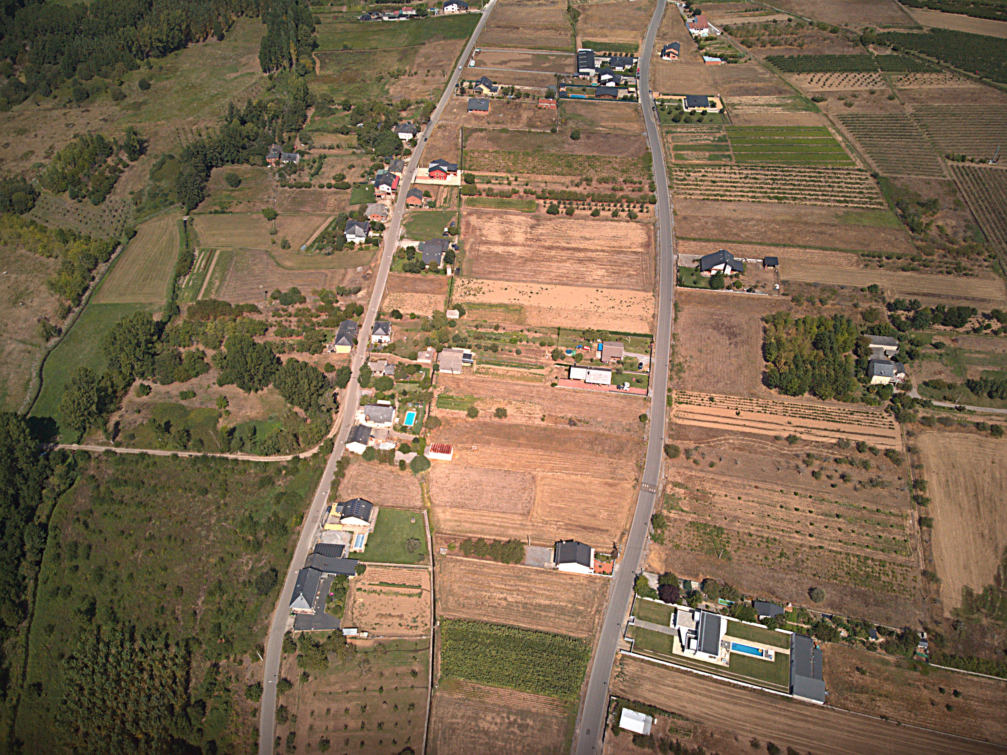 La Urbanización El Campelín, a la derecha, y las calles de La Lamaciña, Santa Isabel y Hornos confluyendo en la Plaza de Santa Isabel.