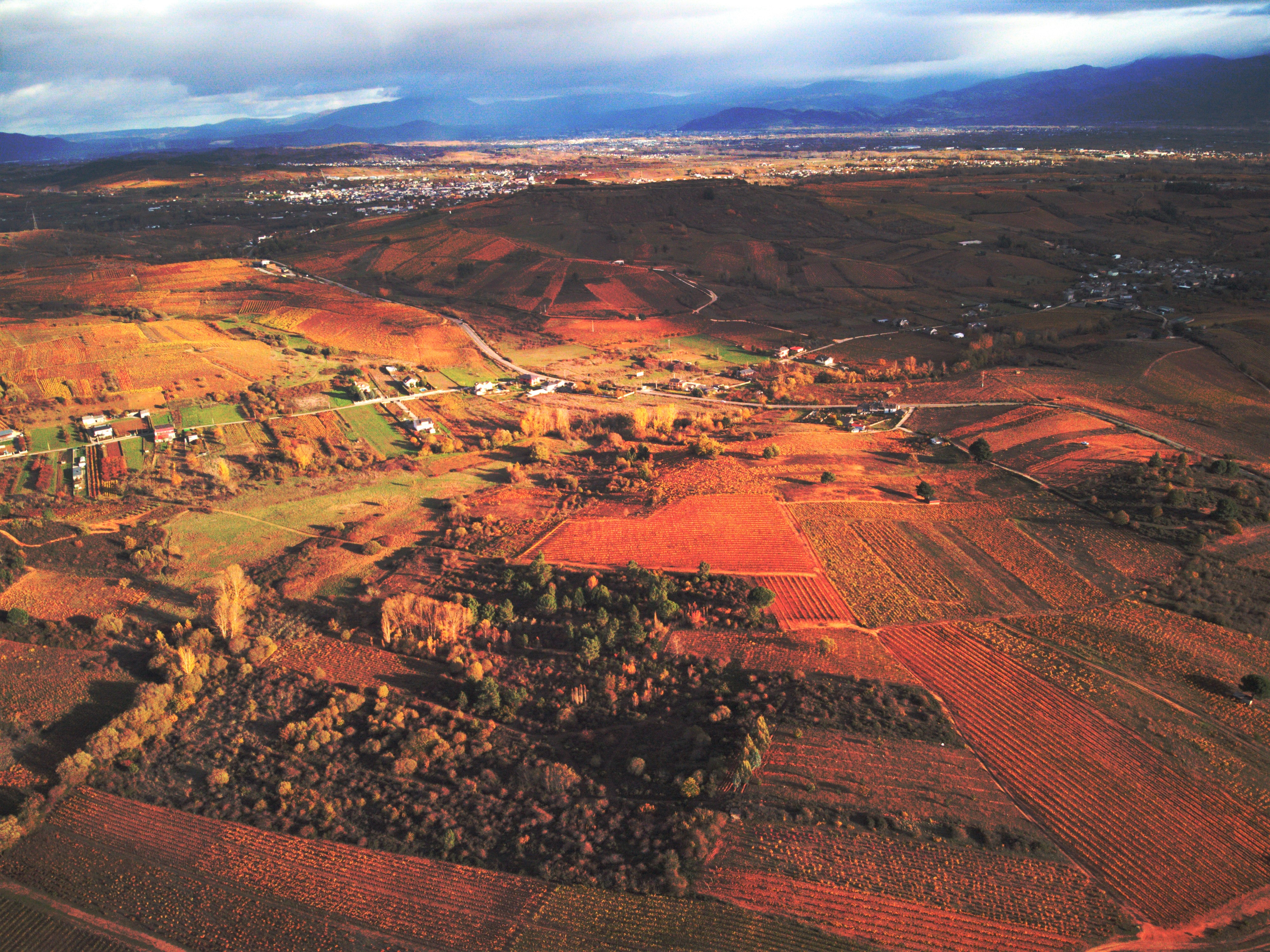 La meseta de Castro Ventosa en el centro de la imagen y, a su derecha, Valtuille de Abajo .