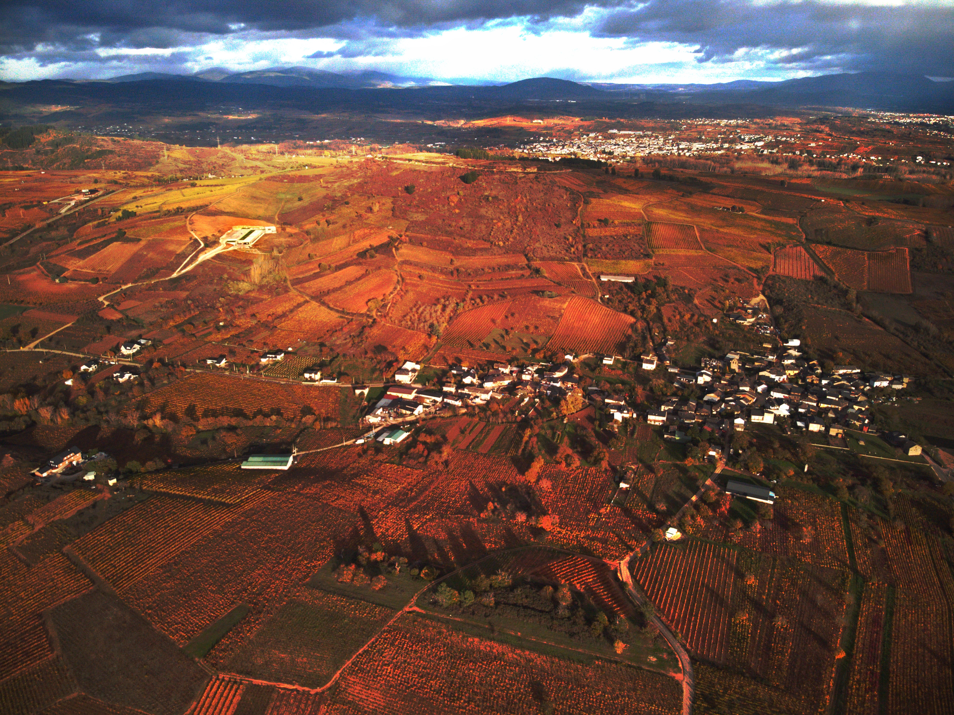 Cacabelos, al fondo a la izquierda, detrás de Castro Ventosa, y Valtuille de Abajo en primer plano .