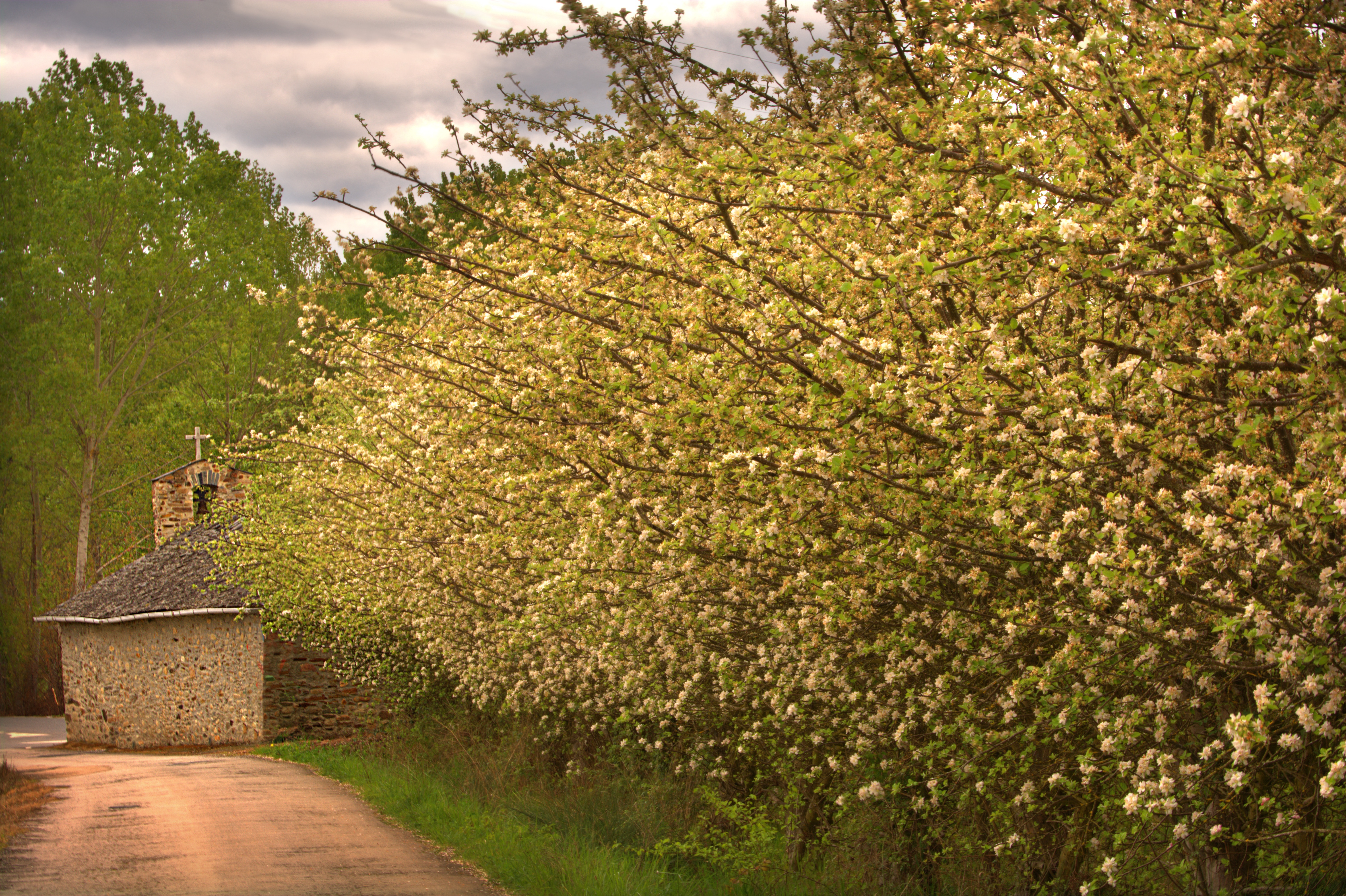 “Caen las flores del cerezo y entre las ramas aparece un templo”