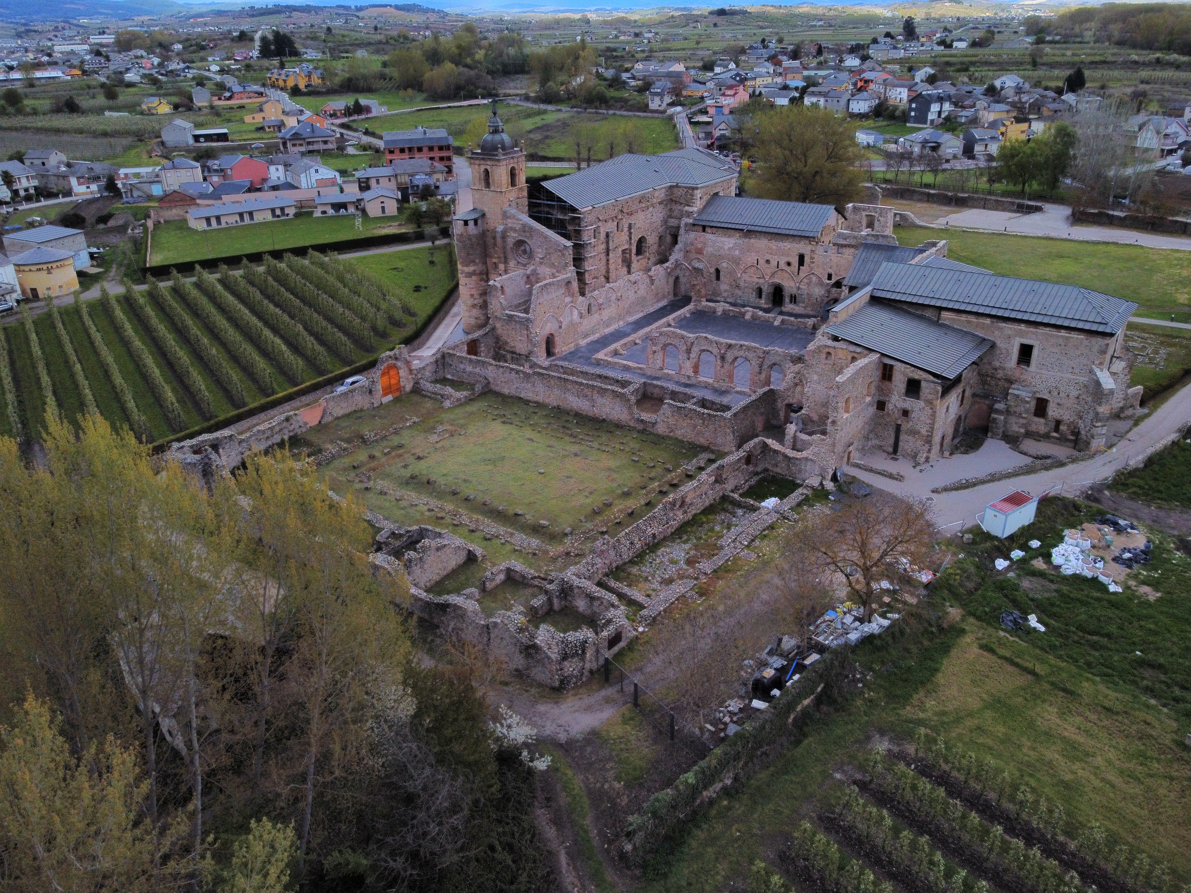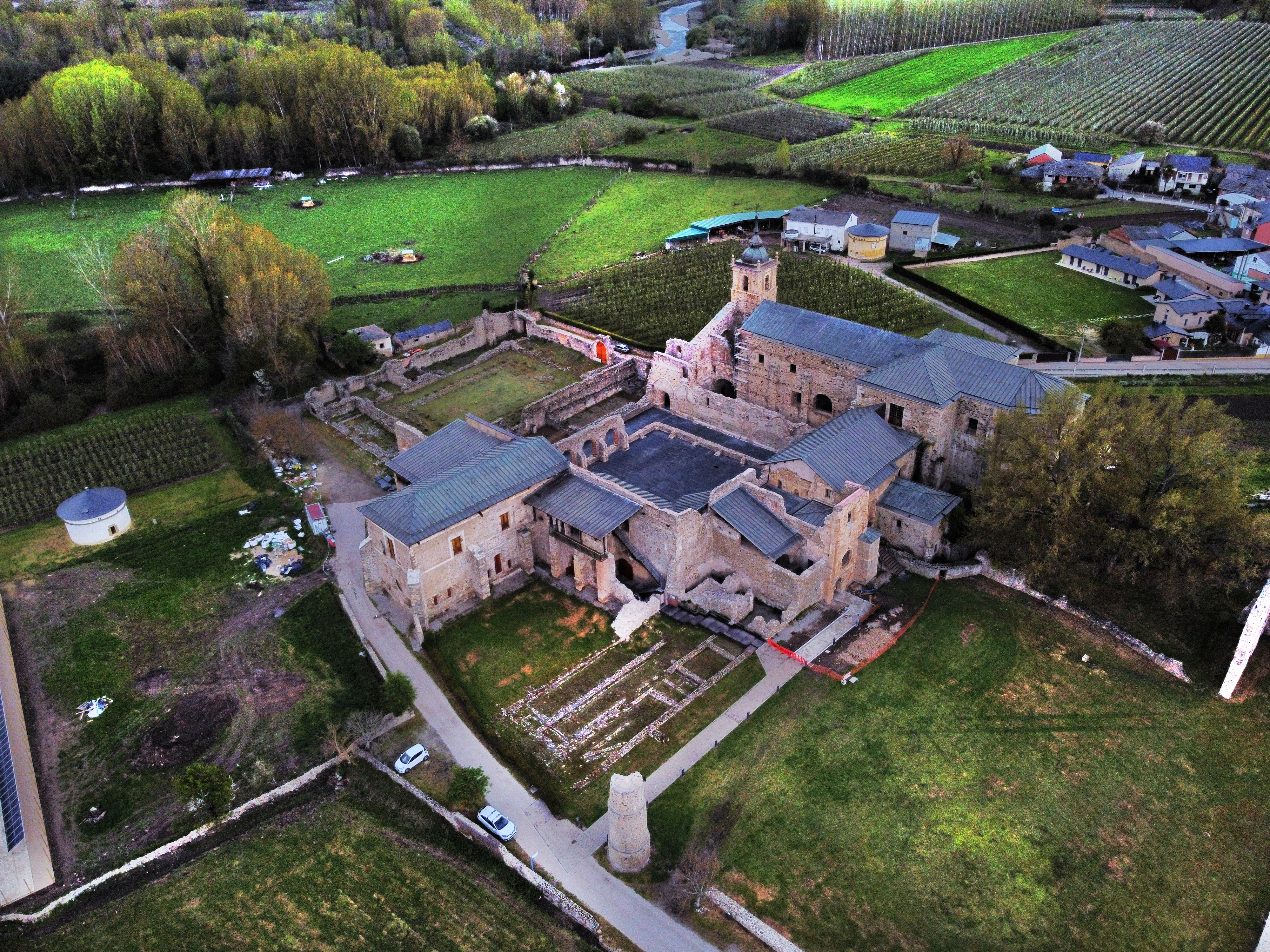 La parte cercana al río Cúa de Carracedo del Monasterio, con su Monasterio en primer plano a la derecha.