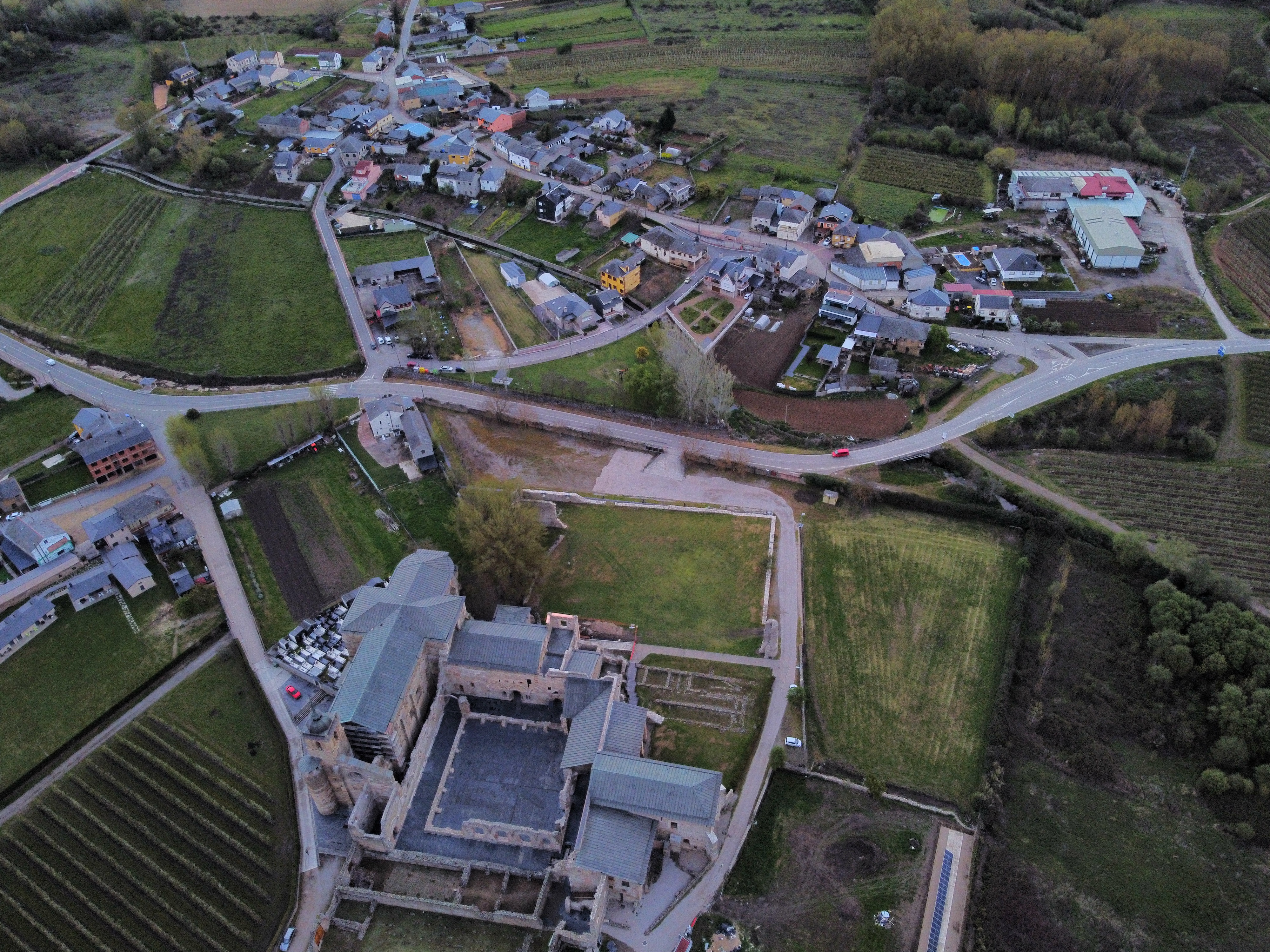 Monasterio Santa María en primer plano en la aldea de Carracedo del Monasterio.