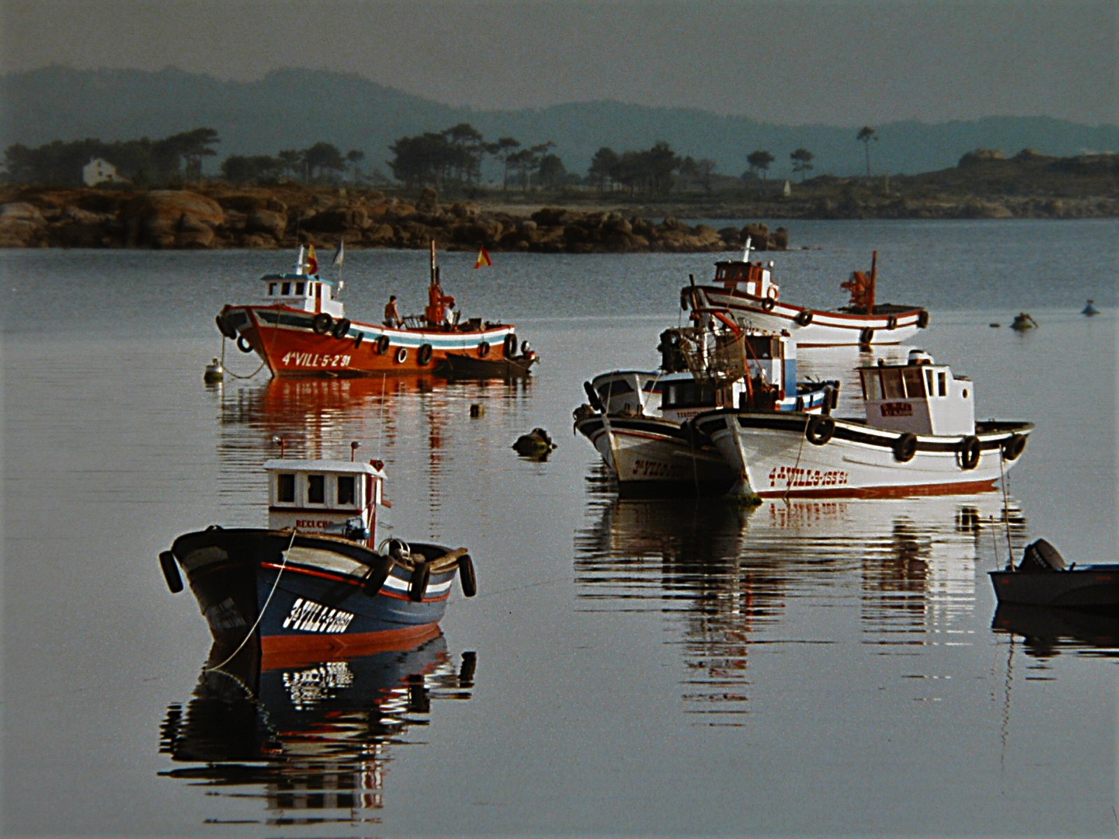 Típicas embarcaciones en las rías bajas (Galicia) a la espera de iniciar un nuevo día de pesca en los calurosos días del verano del 92.