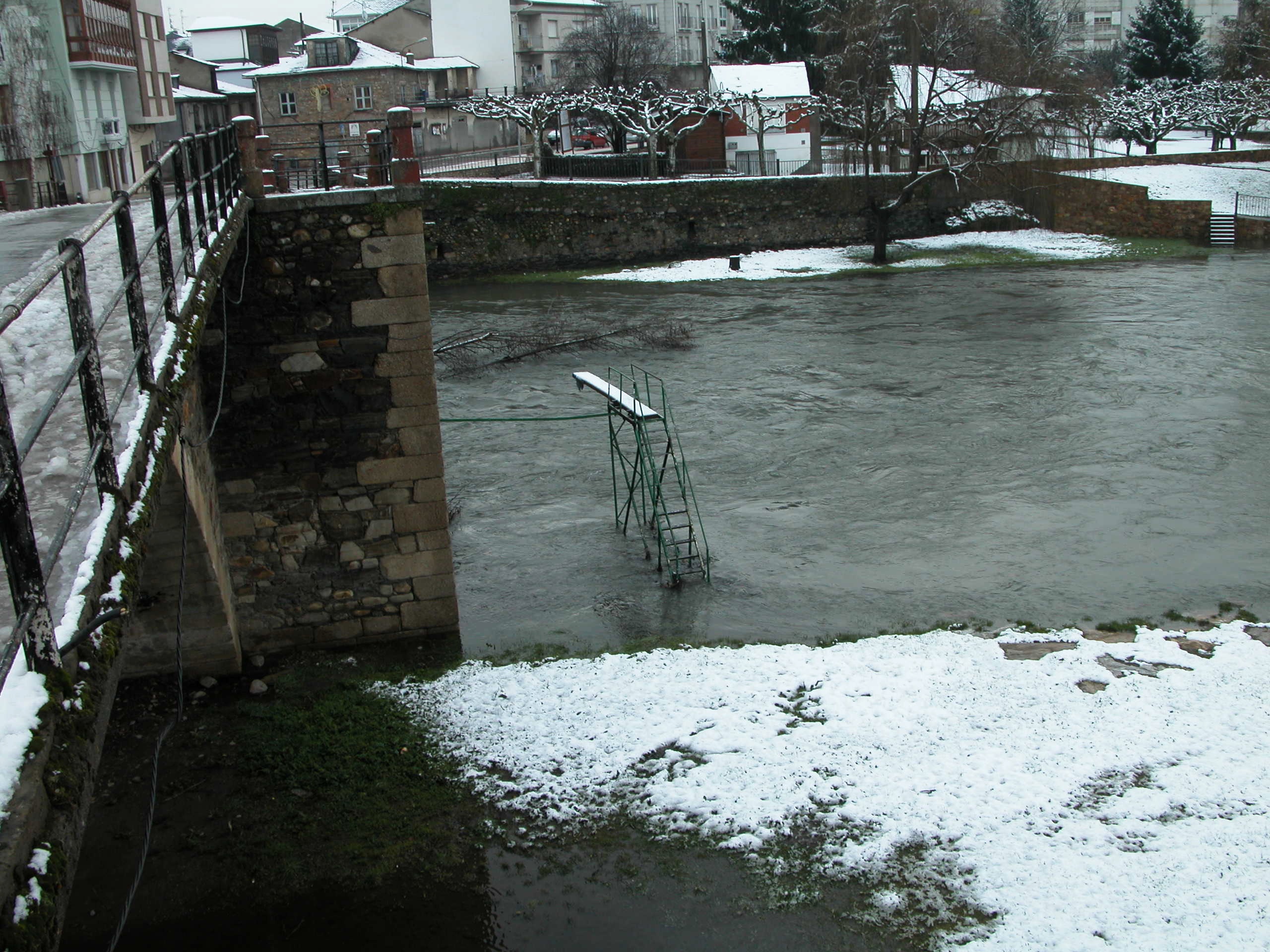 Una nevada del invierno de 2009 nos dejó este espectacular panorama del río Cúa, puente y trampolín, este último ya formando parte de recuerdos que dejaron su impronta entre tantos de sus vecinos.