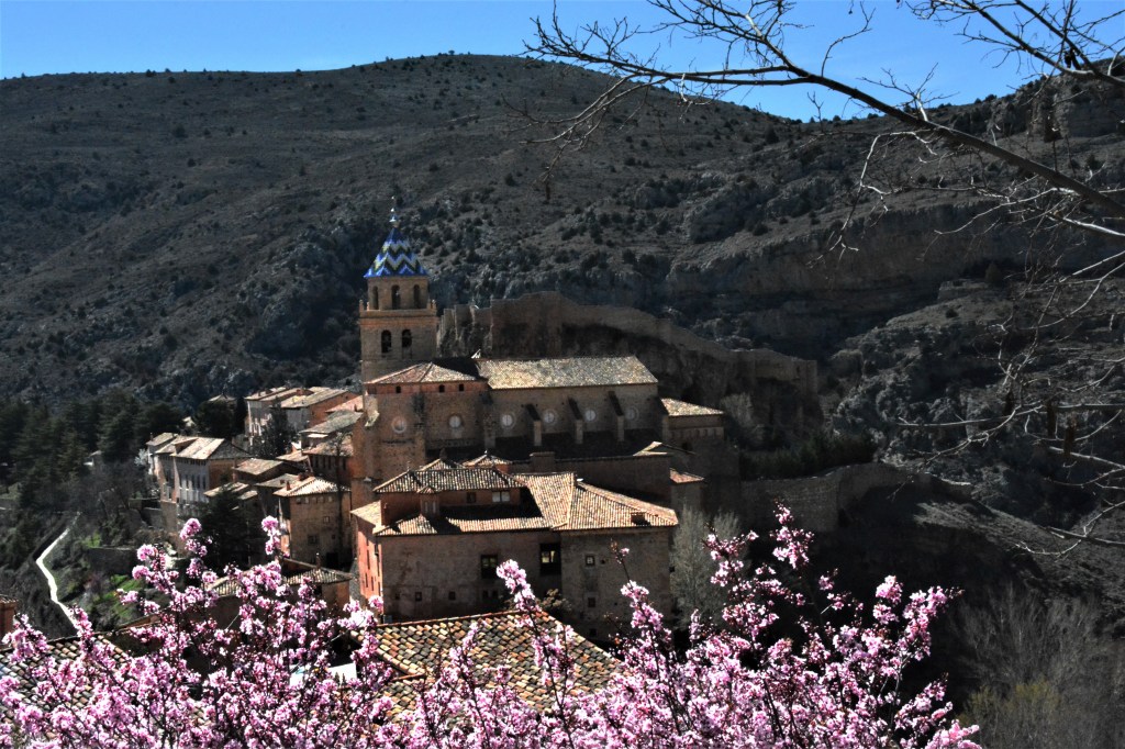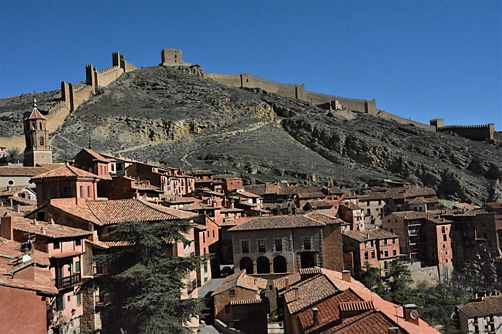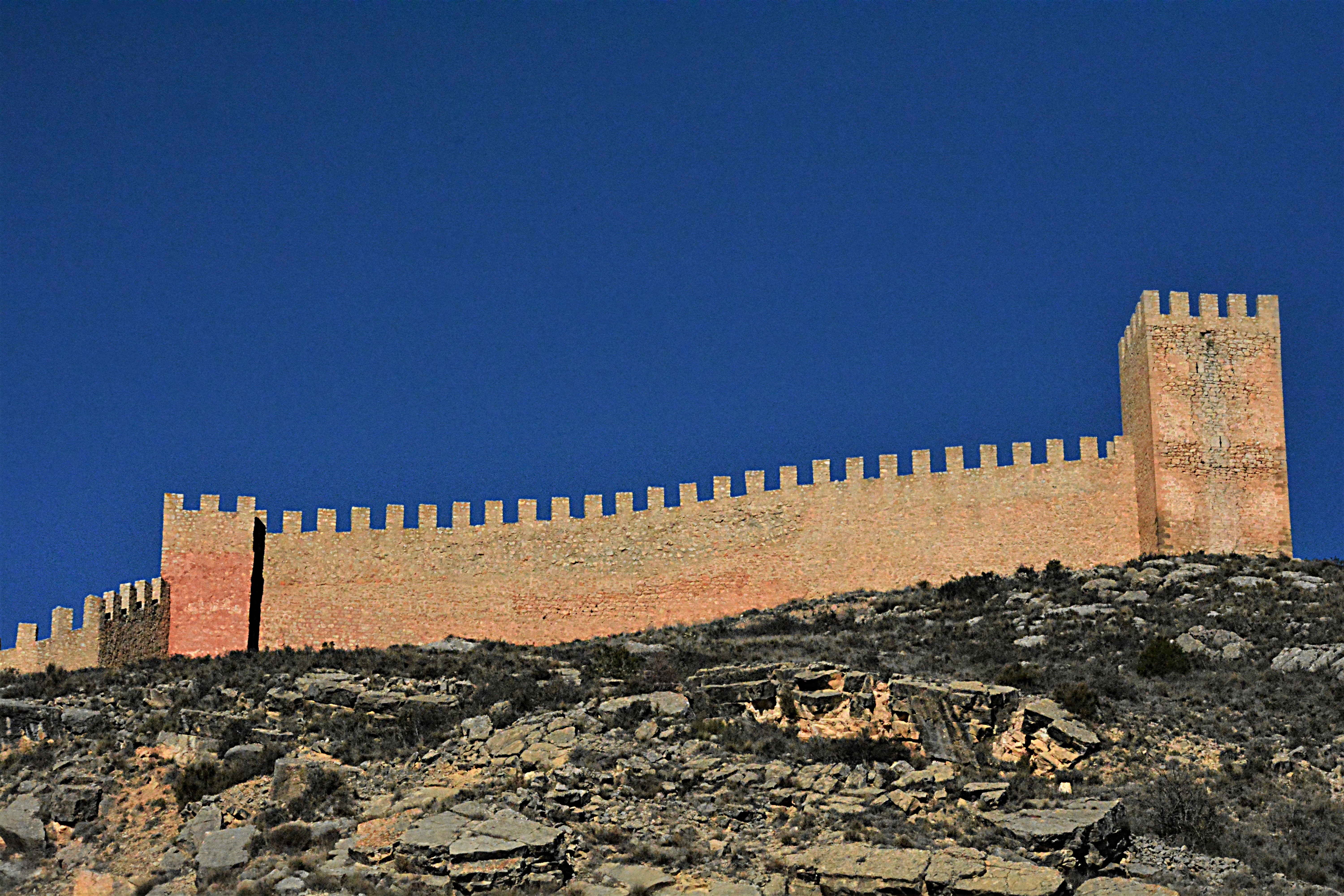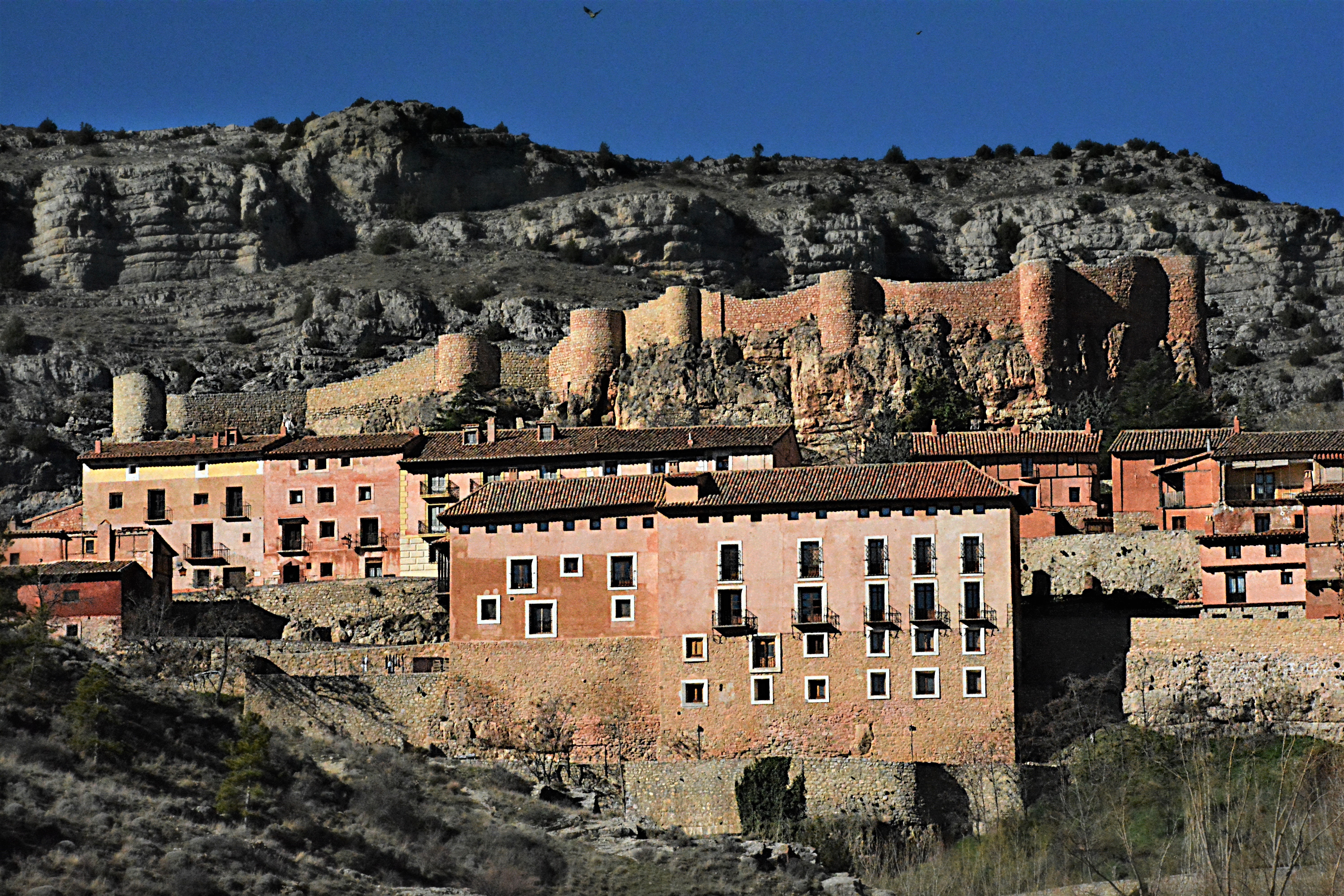 Las murallas de Albarracín reflejando la luz de atarceder.