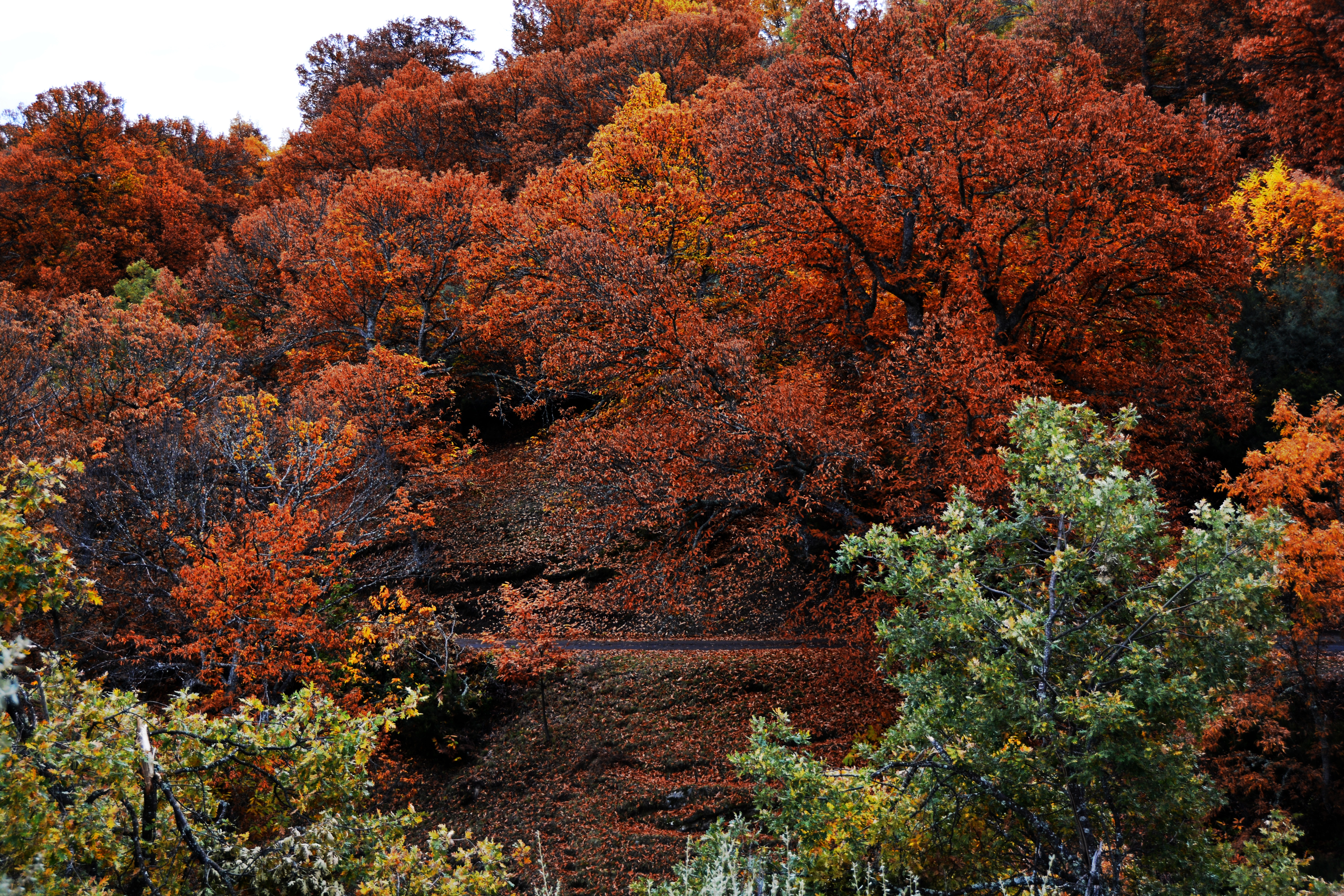 Hojas de castaño acolchando el suelo de Villasumil (Candín), aldea compartida por las comarcas de El Bierzo y Ancares.