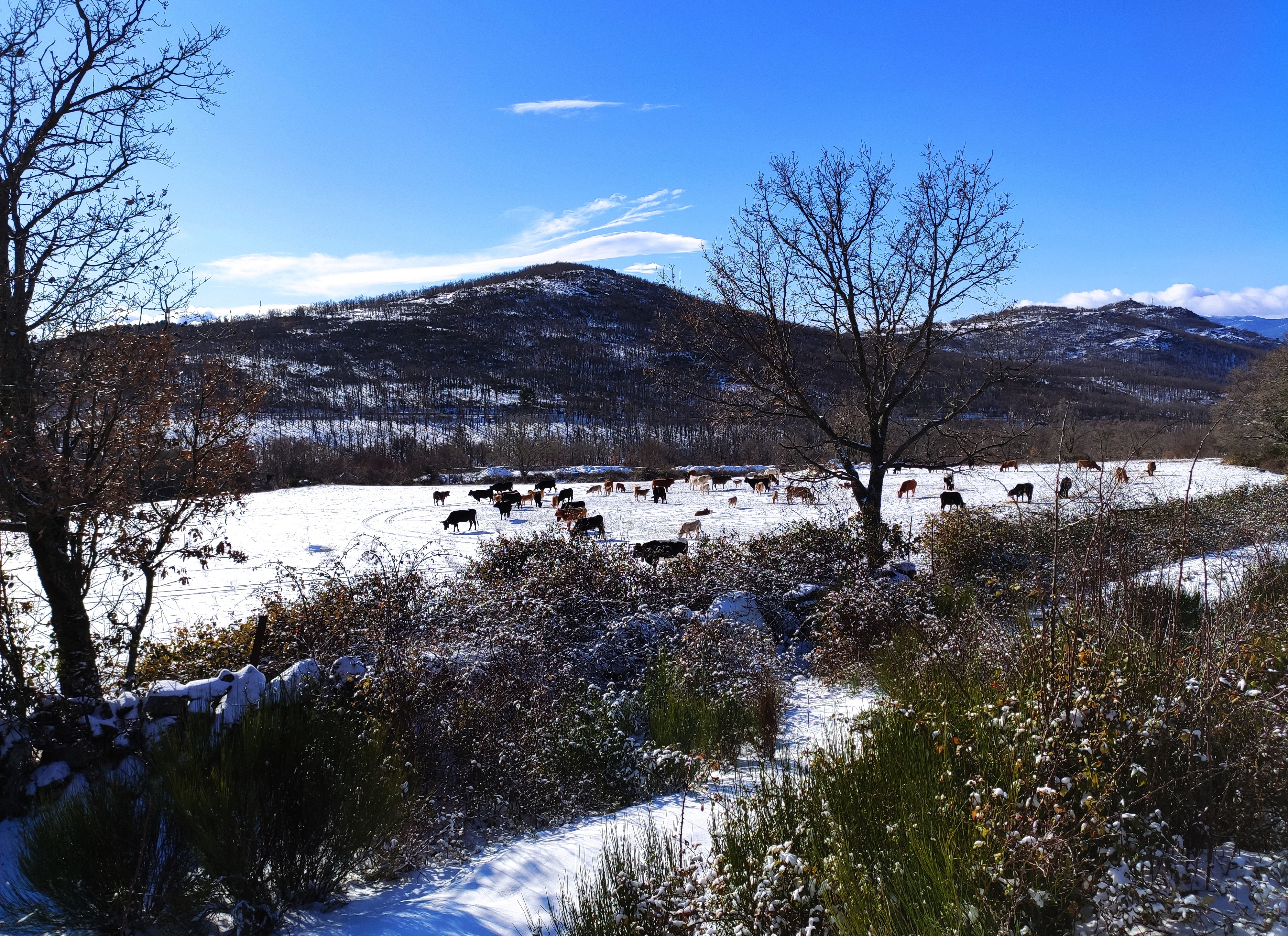 Ganado pastando en la subida al Puerto de Navacerrada (Madrid).