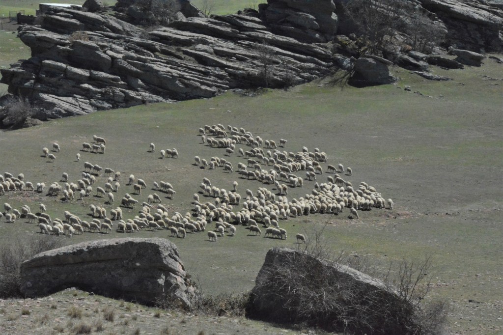 Vista de un rebaño de ovejas desde El Castillo de Zafra.