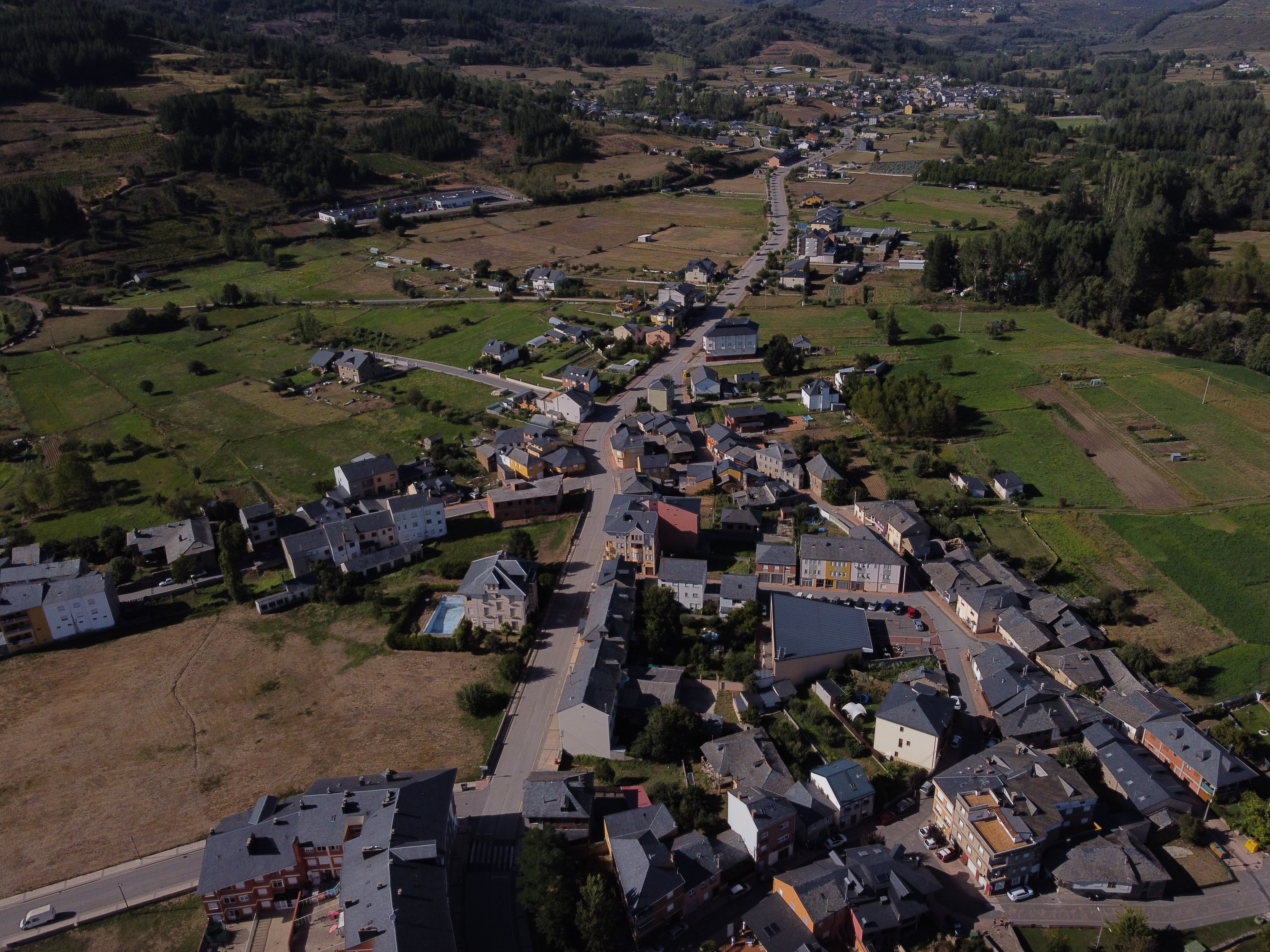Las calles De Don Lucas, El Calvario y Barrancón; en primer plano y al fondo la calle Berlanga que emplama con la carretera comarcal LE-716.