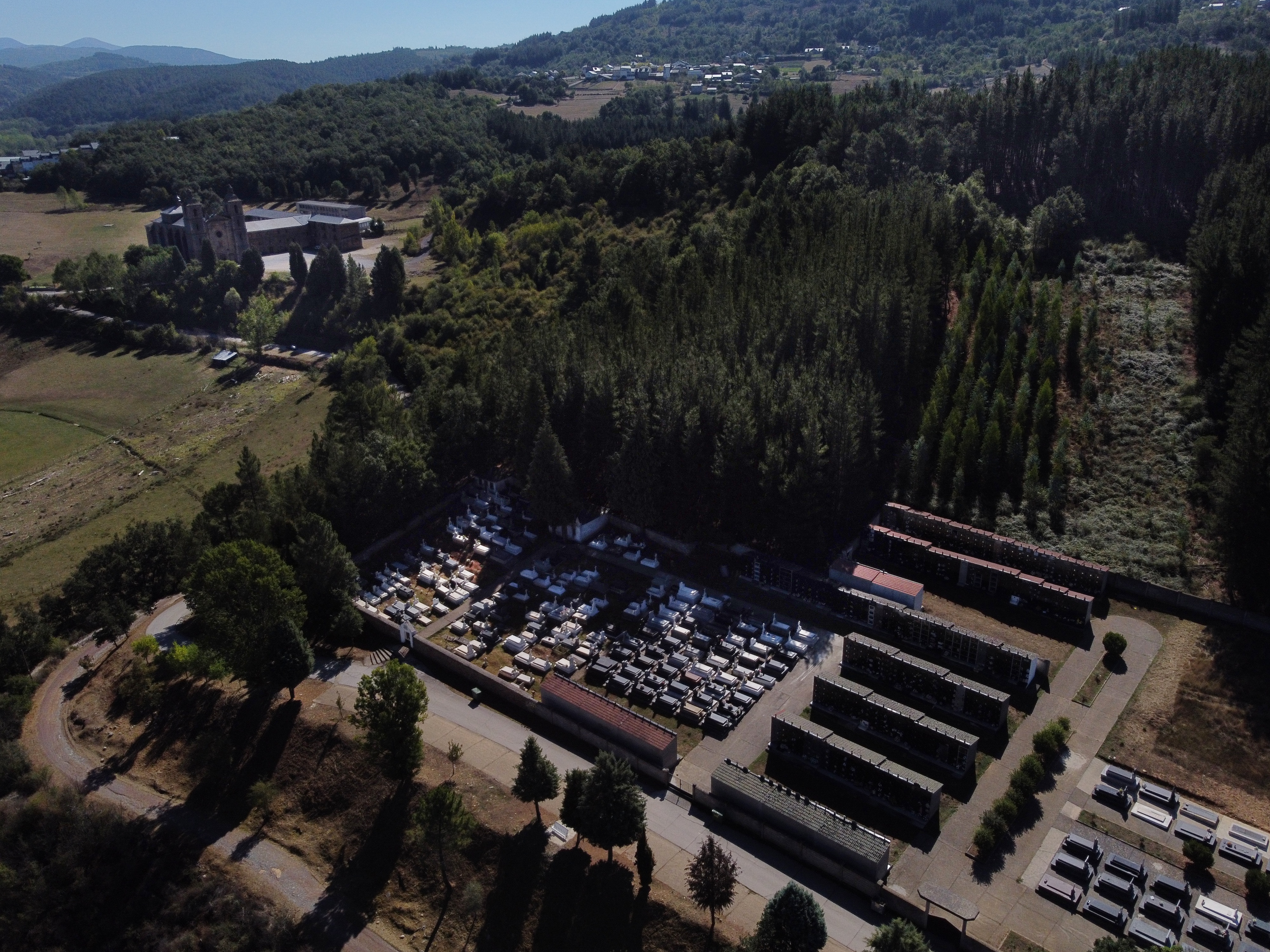 El Cementerio de Vega, en las proximidades del Monasterio. El pueblo que se ve al fondo corresponde a El Espino.