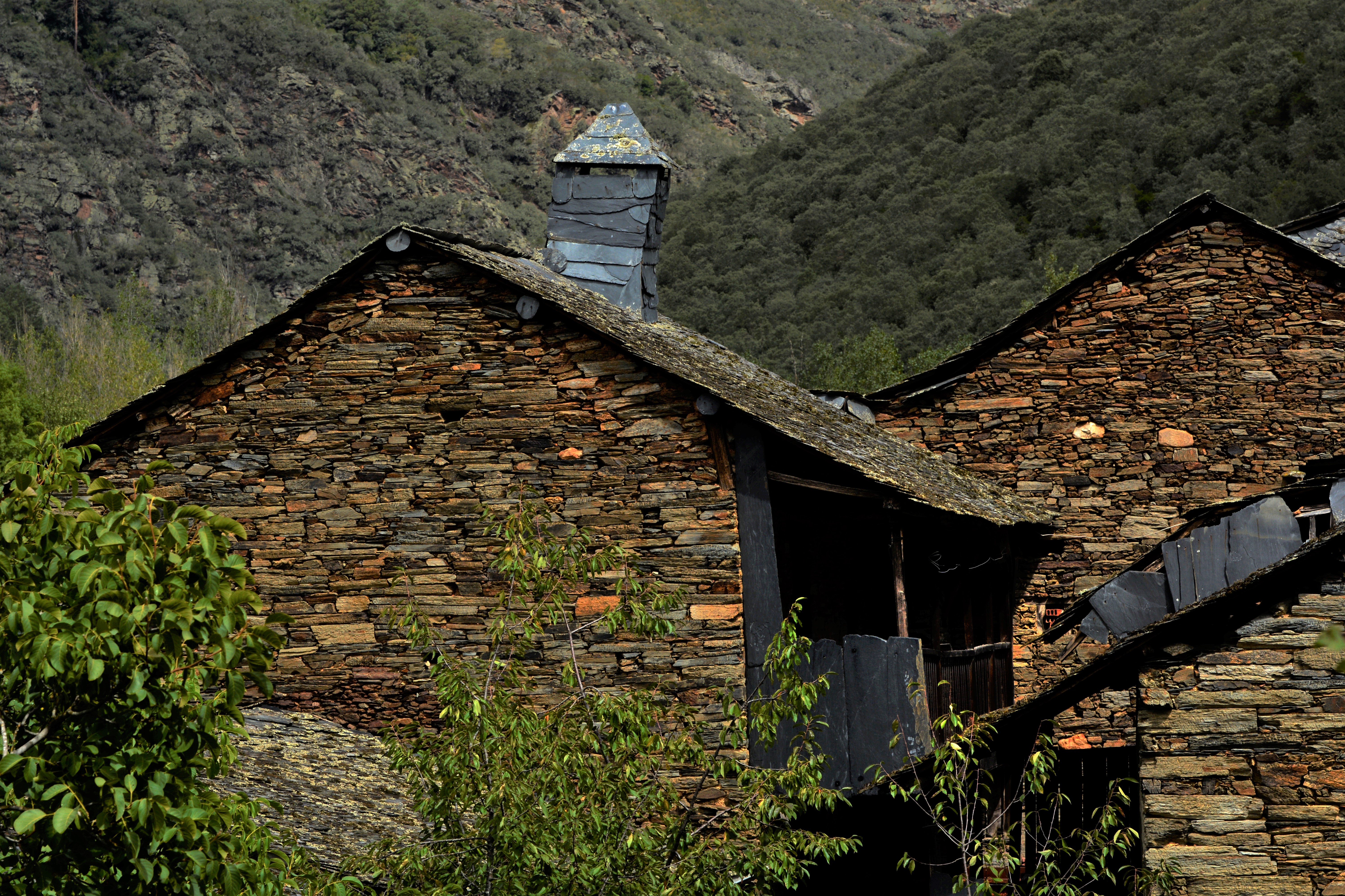 Uno de los reductos de la arquitectura tradicional berciana, Espanillo, en el término municipal de Arganza. Utilizando las piedras y la pizarra de la zona como base de muros, tejados y corredores, erigieron sus casas en perfecta armonía con su natural entorno.