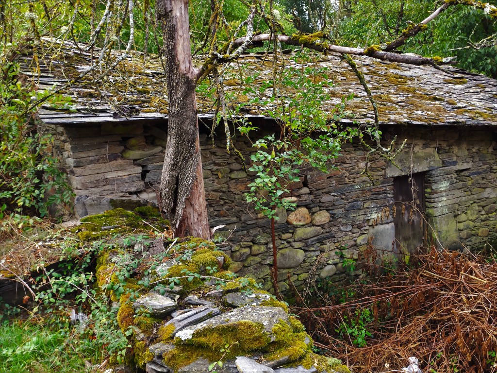 Los restos de lo que fue un muro, un árbol aferrándose a la vida y una casa abandonada representan la esencia del pasado de Espanillo, lo que realza todavía más su belleza actual.