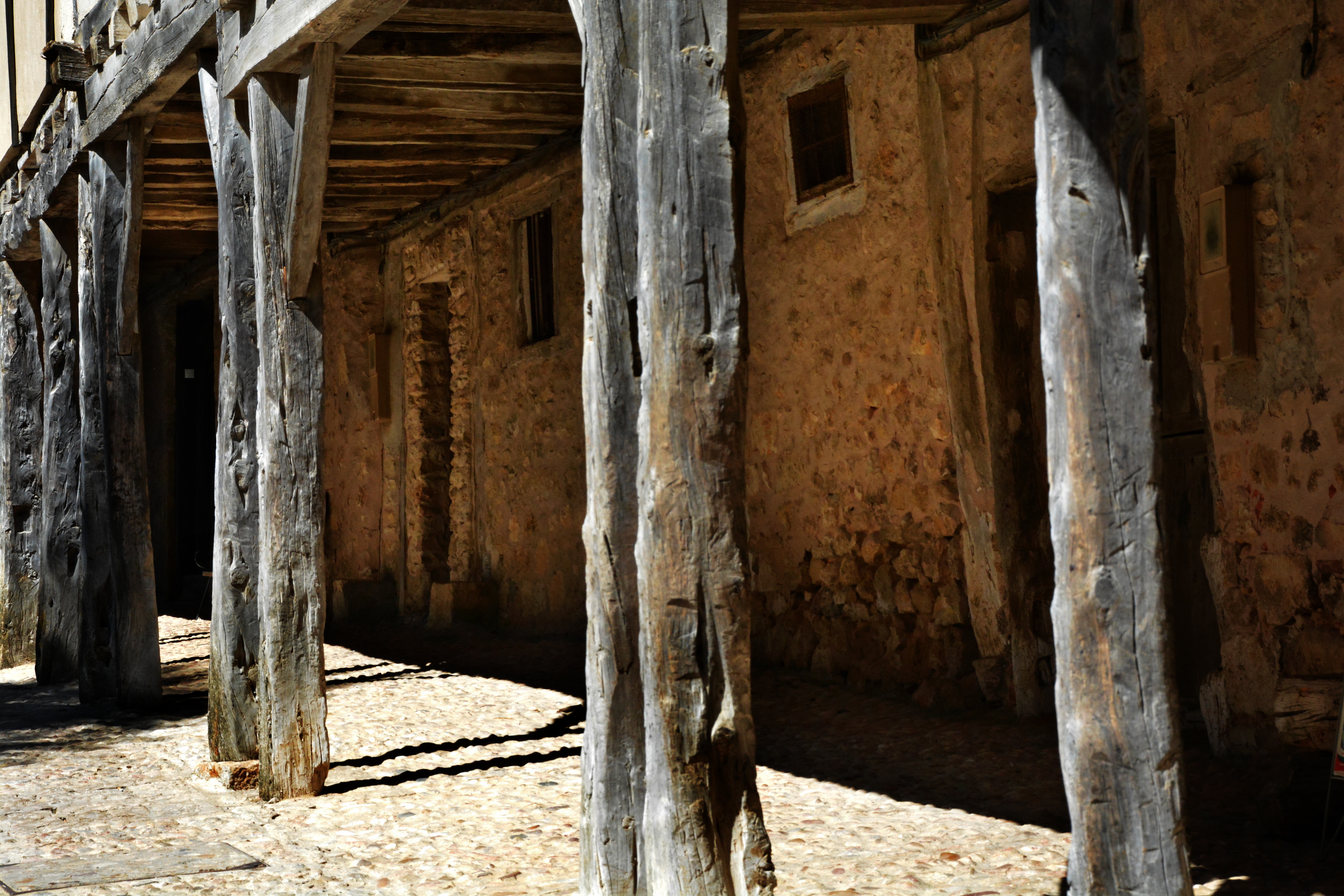 Soportales con columnas y vigas de madera de la localidad soriana de Calatañazor.