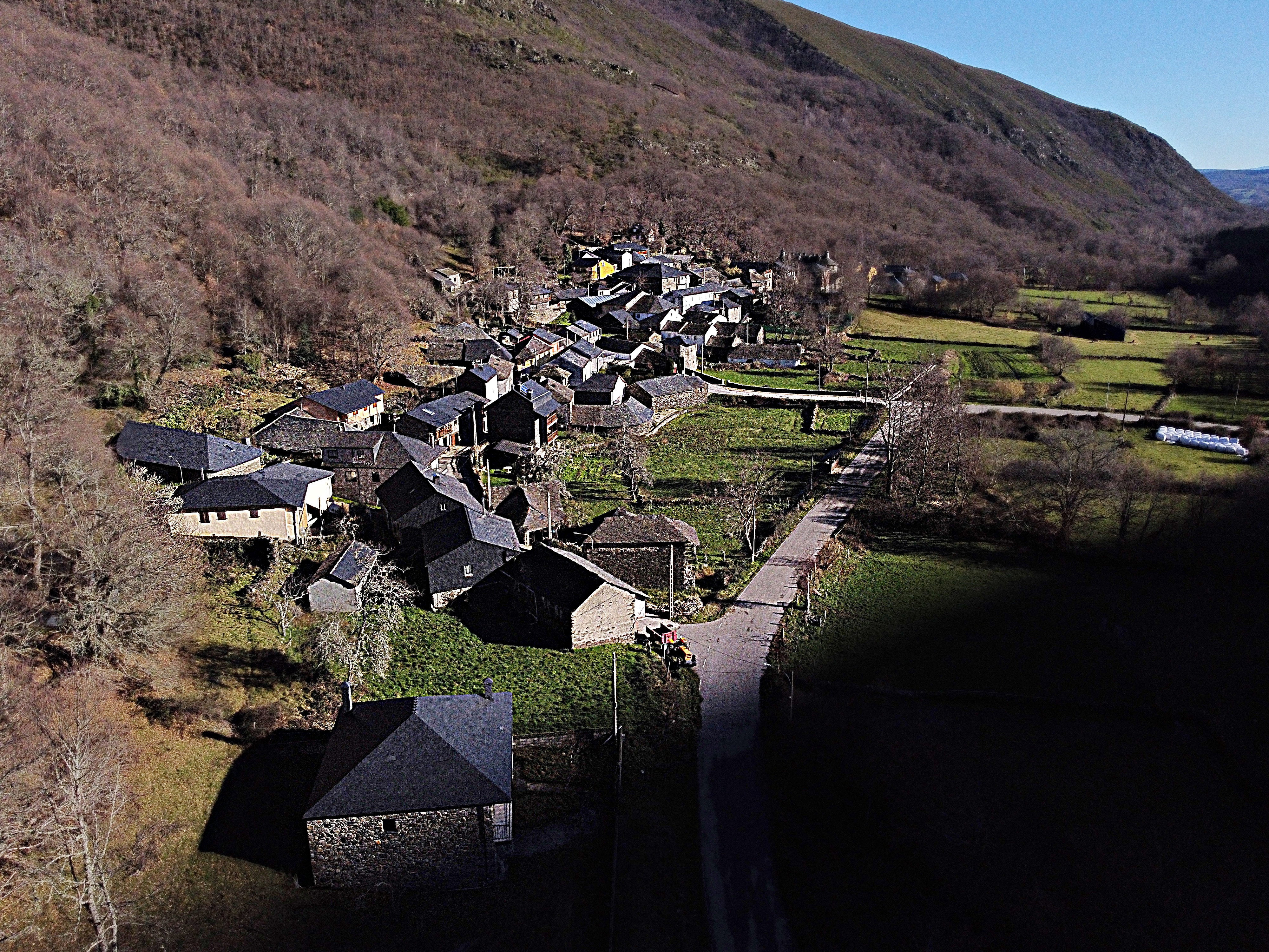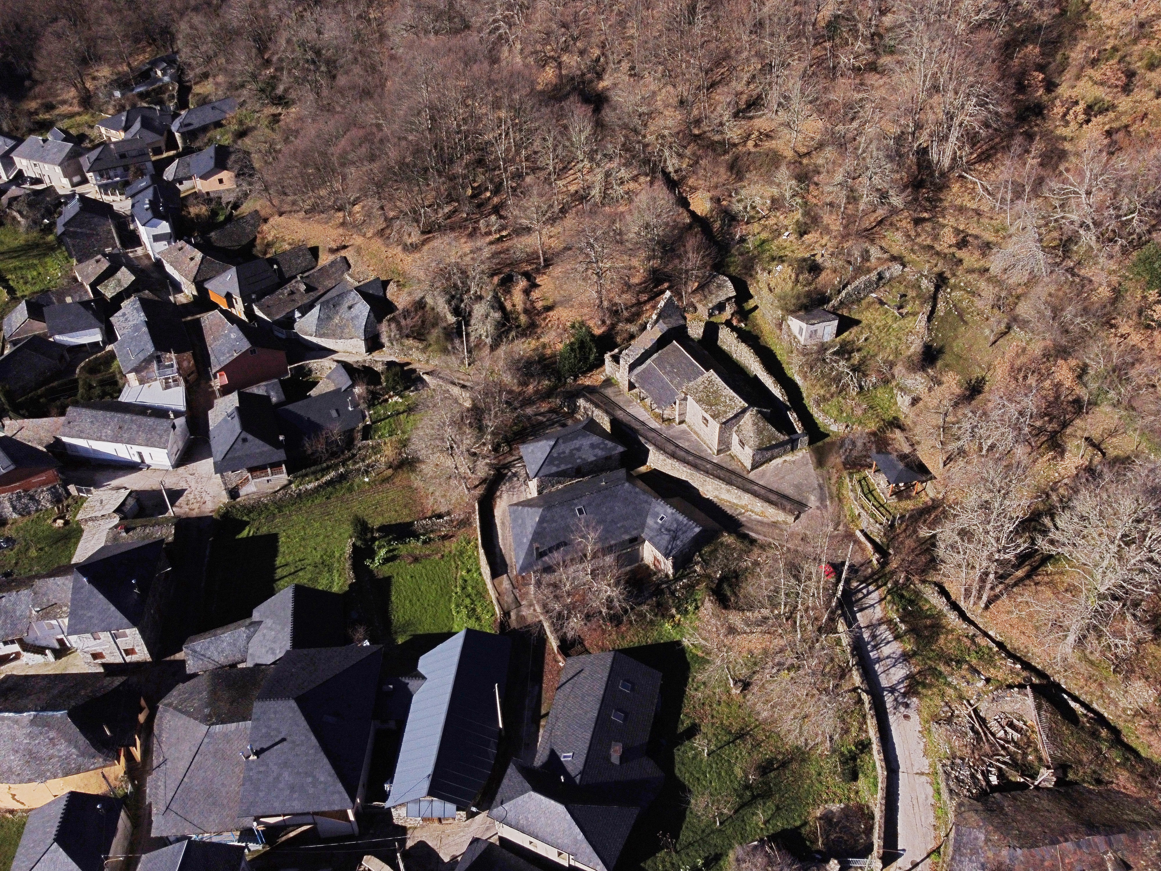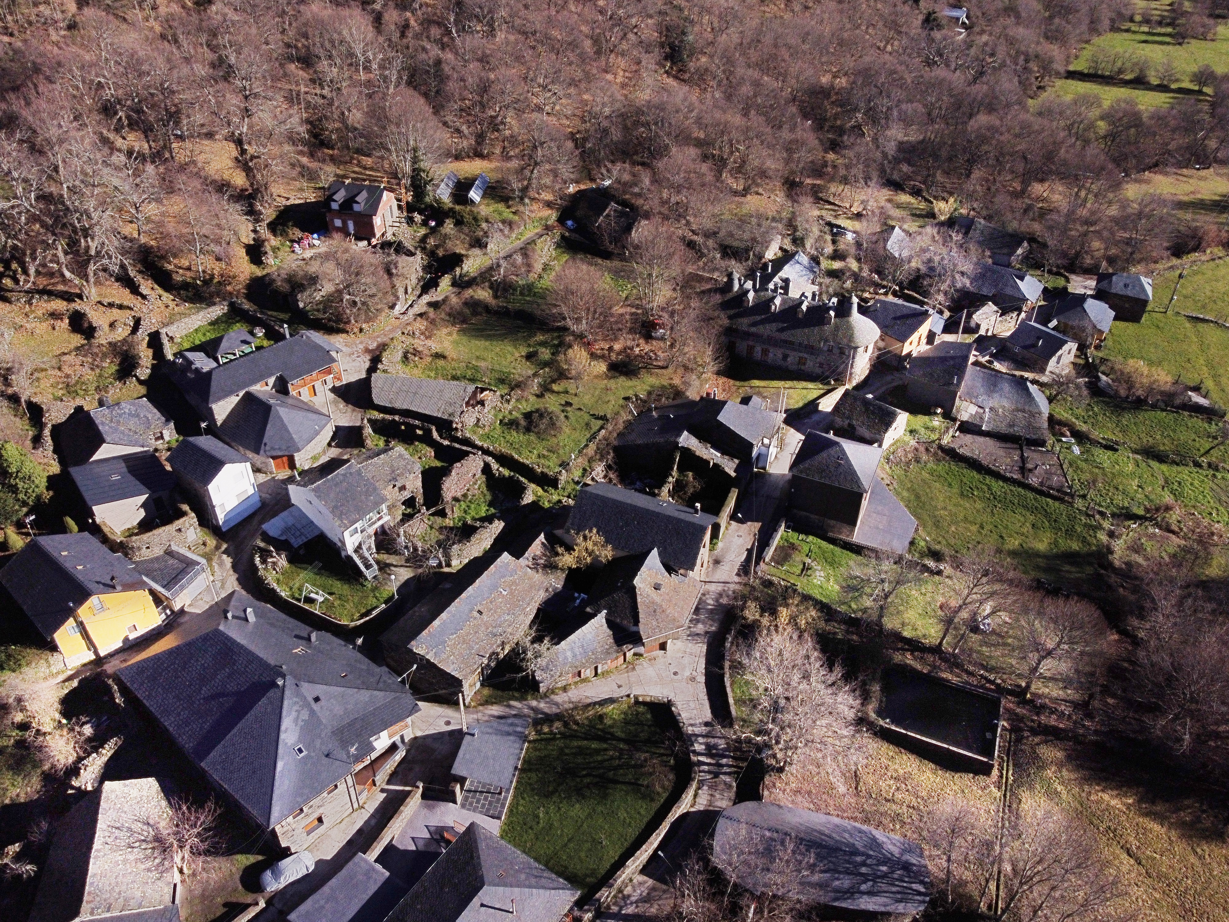 Tejedo, en una vista más cercana, donde todavía se conserva la estructura tradicional de algunos de sus edificios.