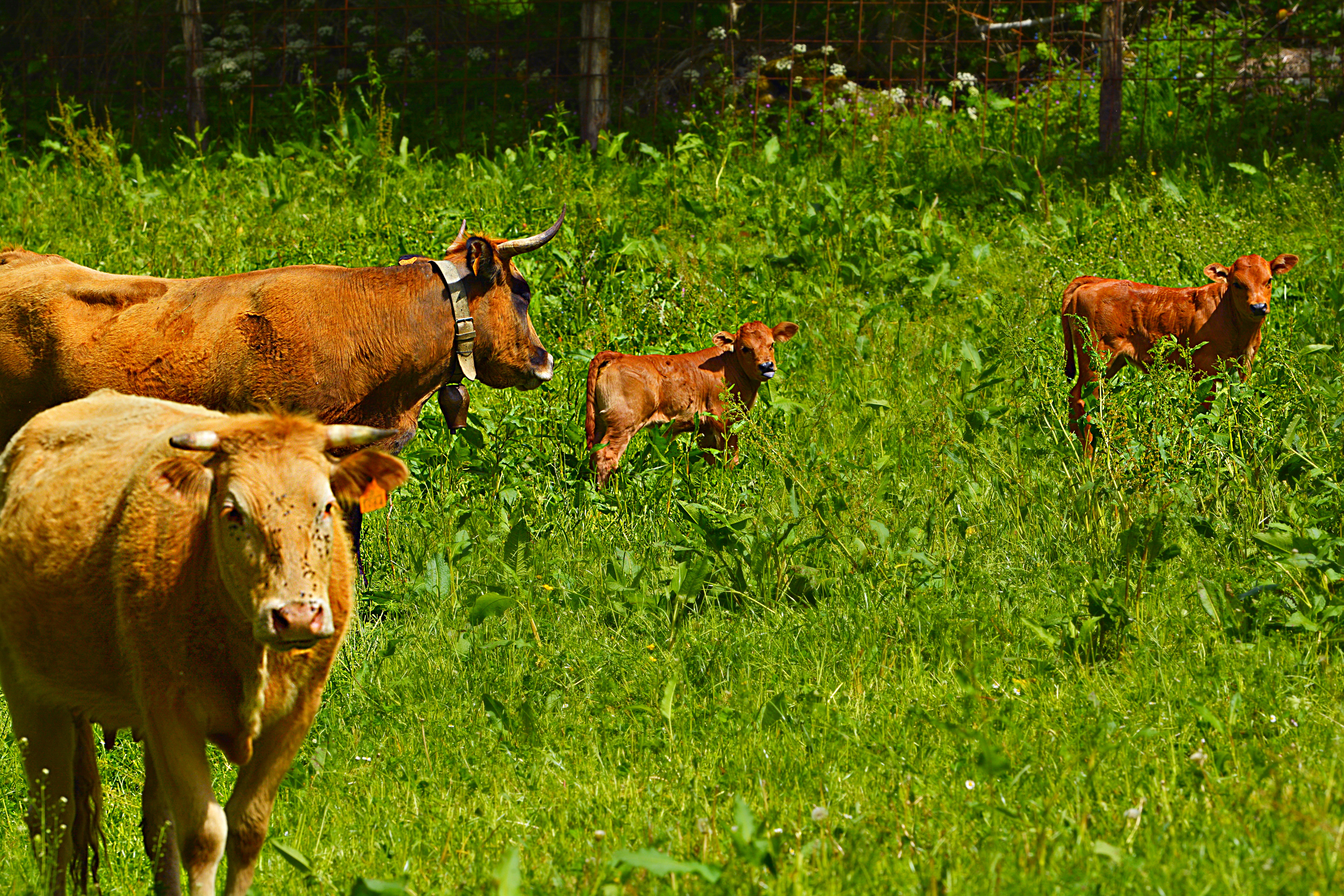Vacas en familia disfrutando de su libertad y del buen pasto.