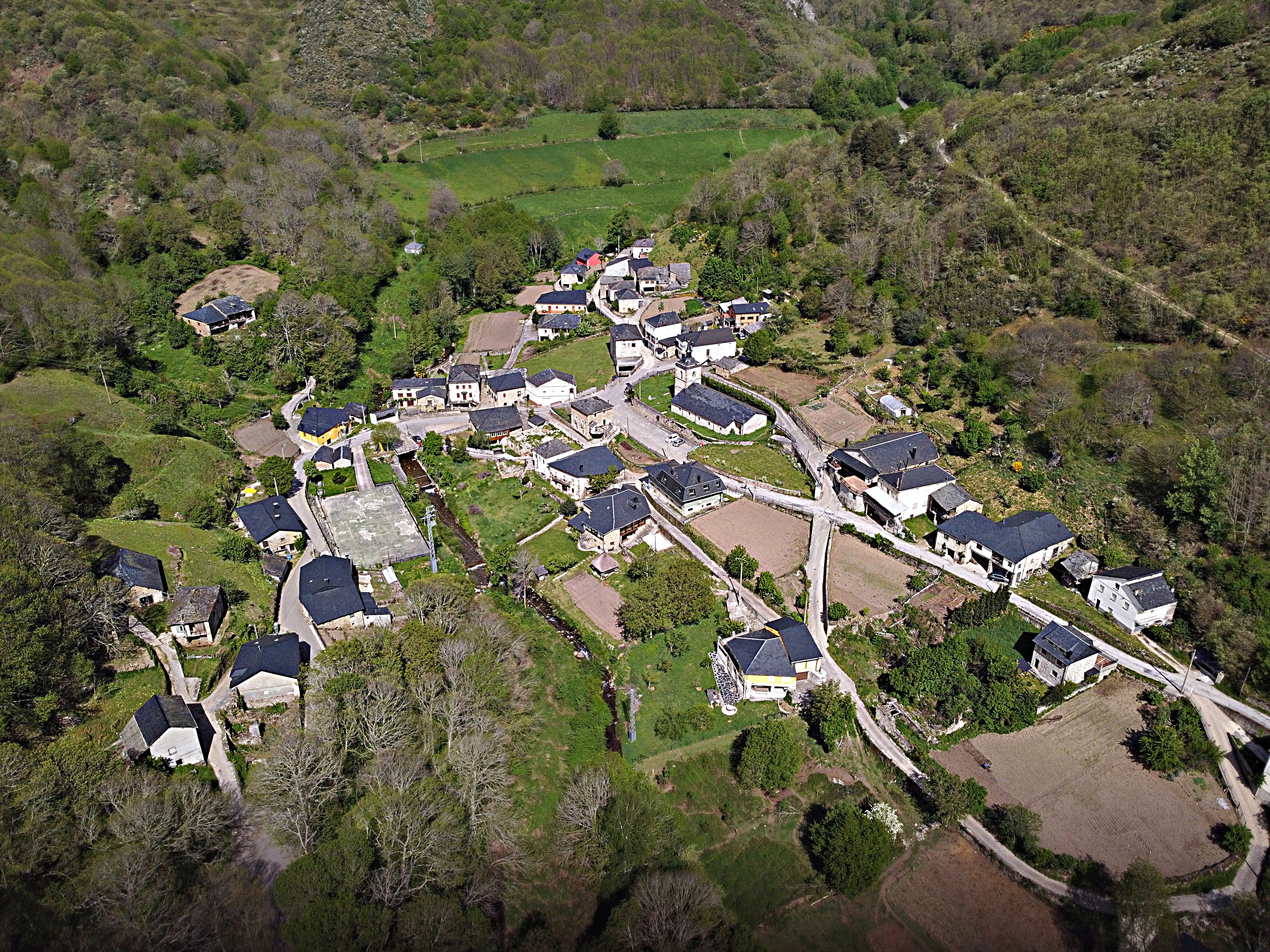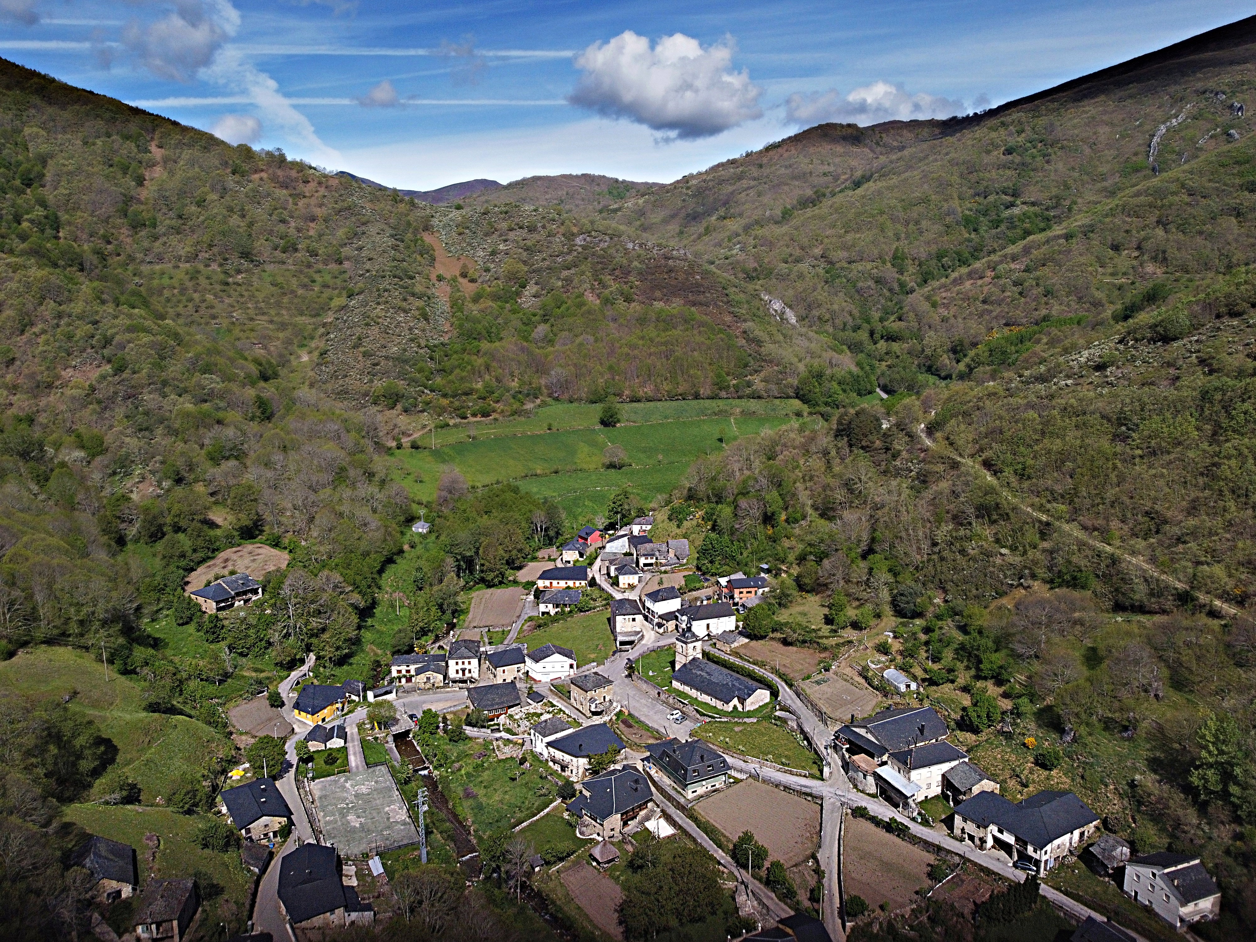 En las estribaciones de la Sierra del Caurel (en el noroeste de la provincia de León) se esconde esta localidad rodeada de prados, castaños y abedules. Al fondo, a la derecha, la carretera que nos conduce a Busmayor y a su popular y admirado Hayedo, en cuyo trayecto nunca nos abandona el fascinante río Barjas.