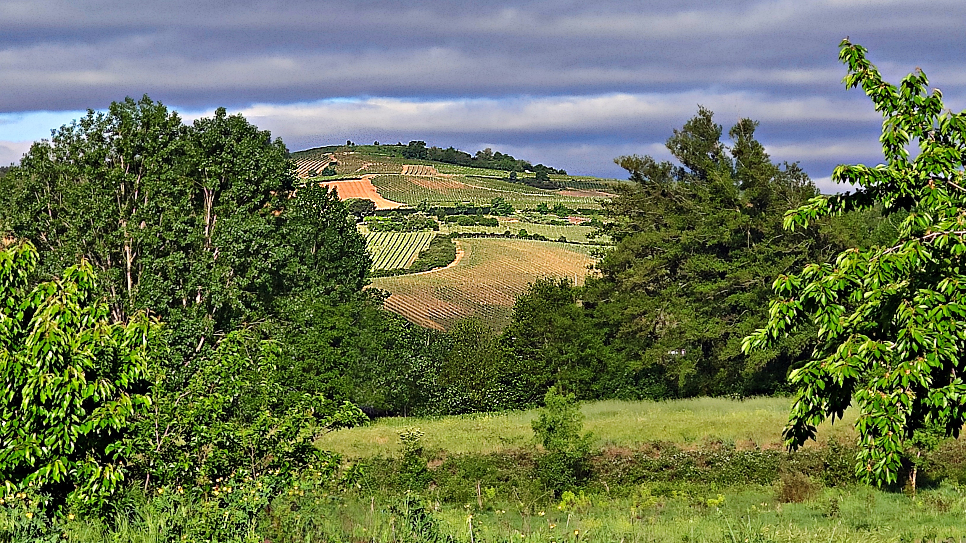 Atardecer con nubes de tormenta cerniéndose sobre Cacabelos (El Bierzo).