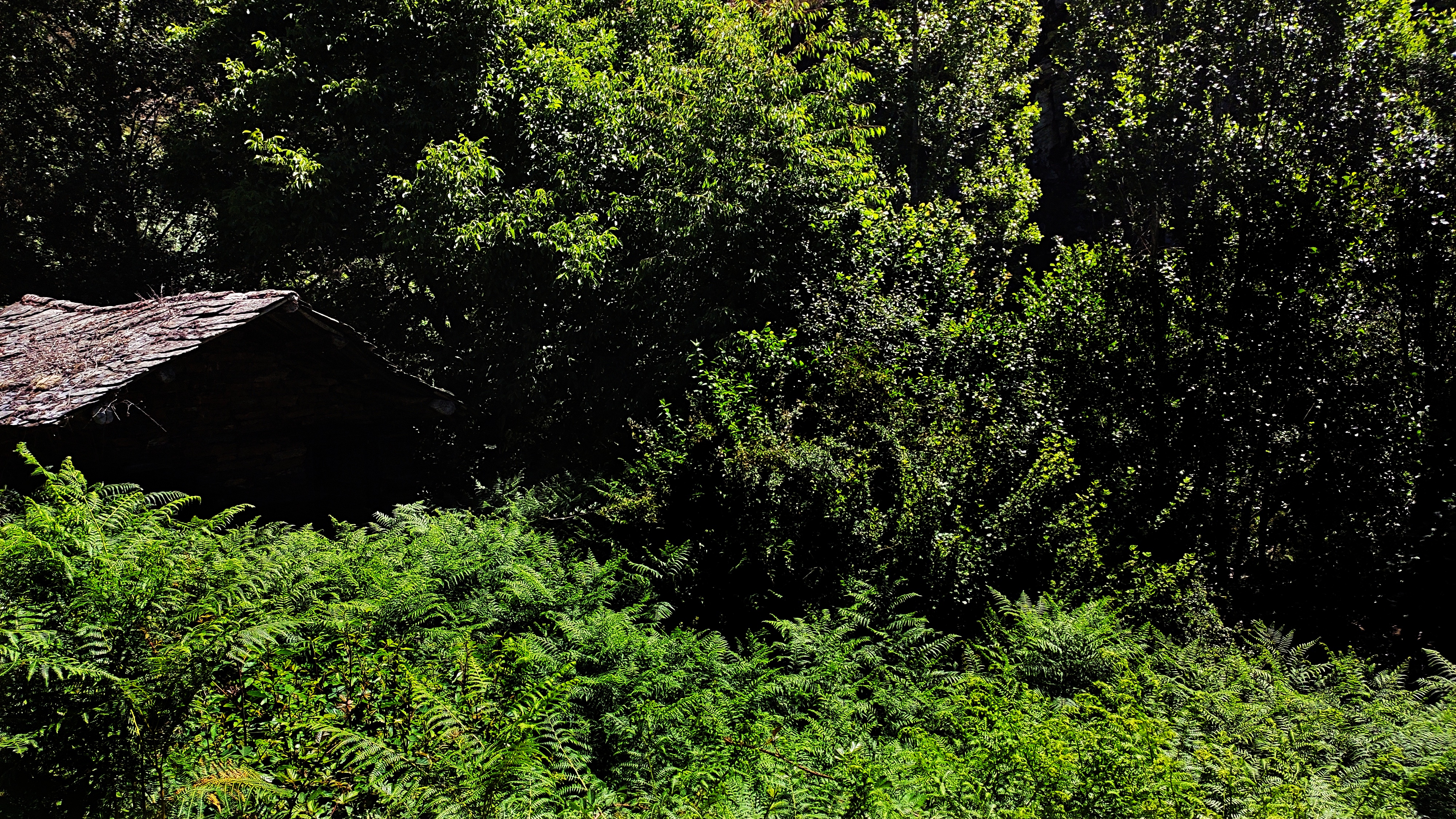 Entre helechos y negrillos nos encontramos con esta vieja casa de labor tradicional junto al Burbia.