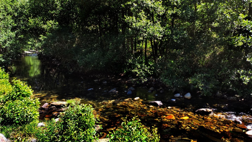 El río Burbia habiendo dejado, pocos metros atrás, la pintoresca aldea de Aira da Pedra.