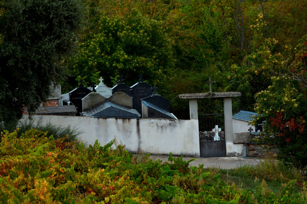 Cementerio de Arborbuena entre castaños y viñedos.