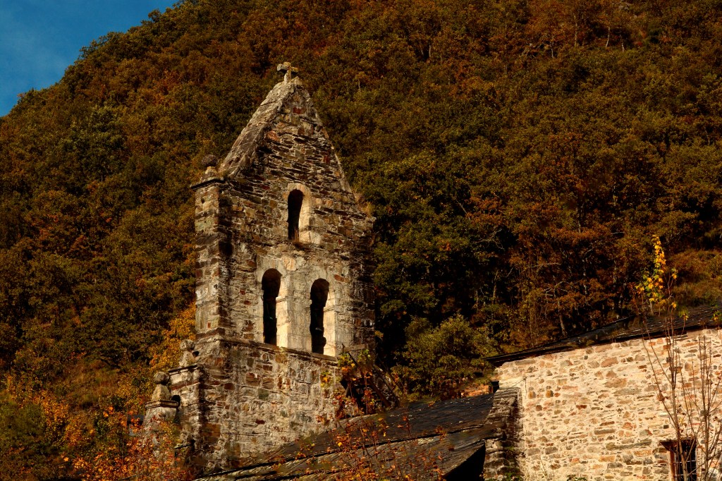 Iglesia de San Miguel en Paradela de Muces con su hermoso cementerio florido.