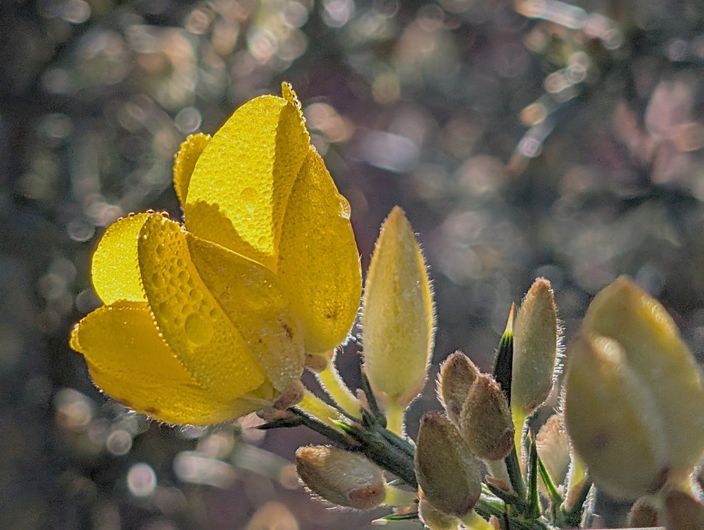 Flor de la retama envuelta en el rocío en las inmediaciones de Arganza.