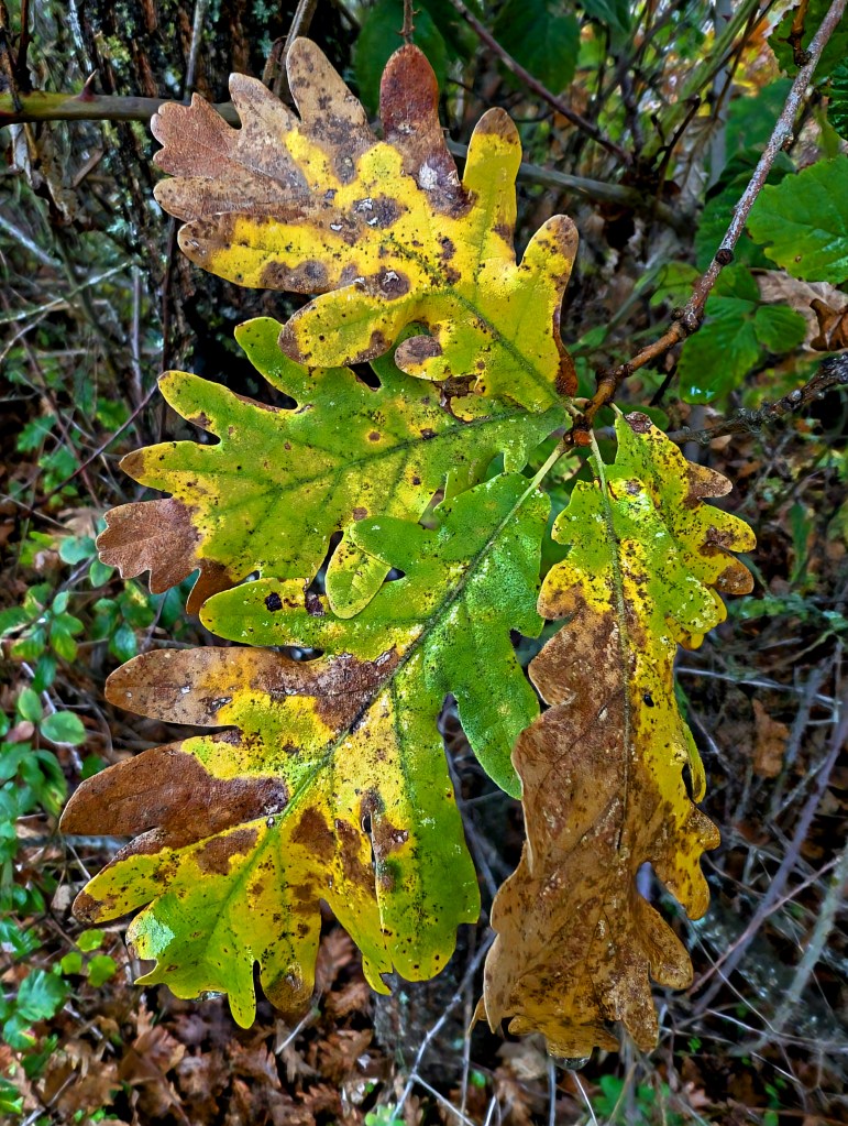 Antes de su caída las hojas del roble todavía aferradas a sus ramas, nos regalan sus vivos colores en las inmediaciones de Cacabelos.