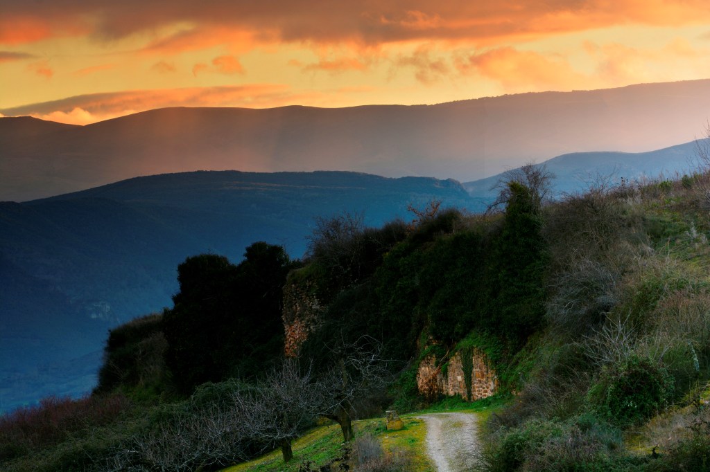 Murallas de Castroventosa en dirección suroeste desde la vertiente de Cacabelos.