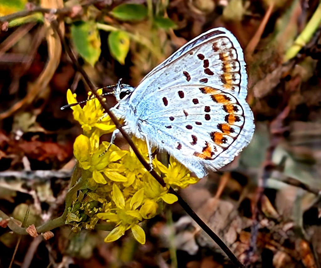 Mariposa luciendo el perfecto dibujo de sus alas, como si se las hubiera coloreado un exquisito acuarelista, en este caso en las proximidades del mágico paraje que rodea Aira Da Pedra, Villafranca del Bierzo.