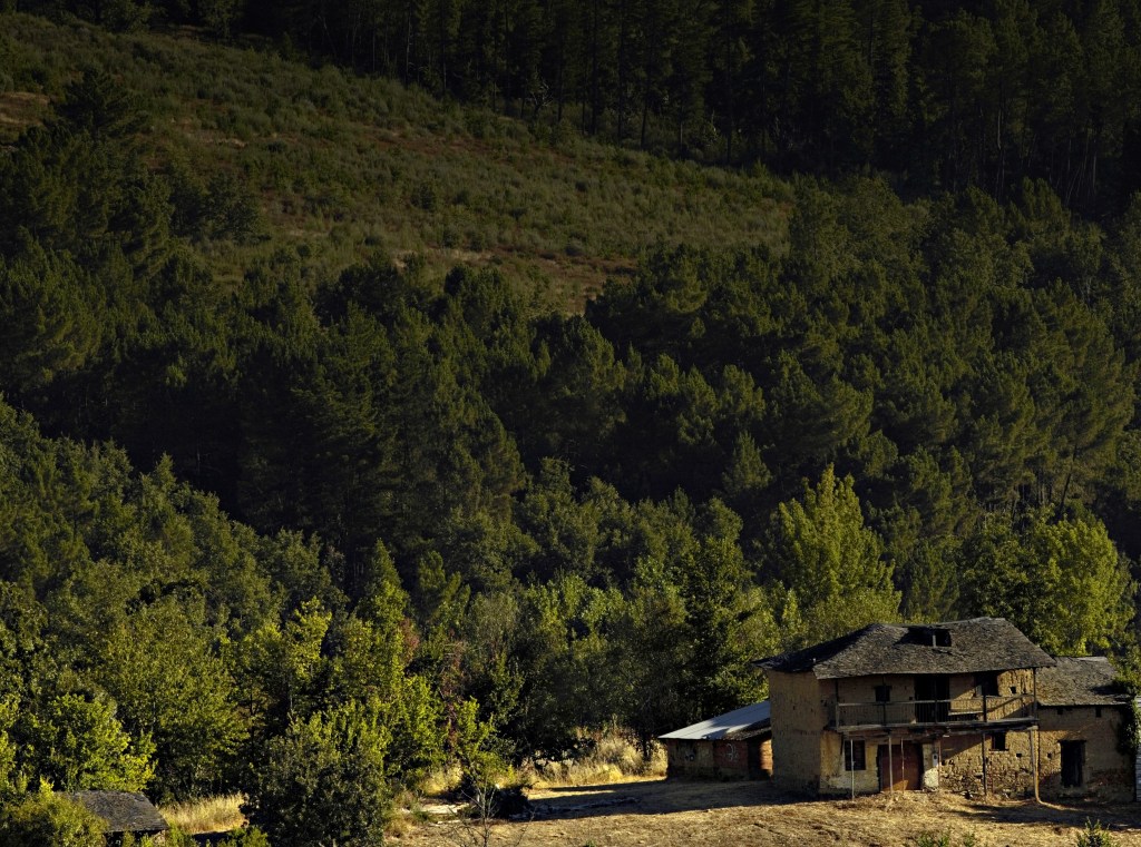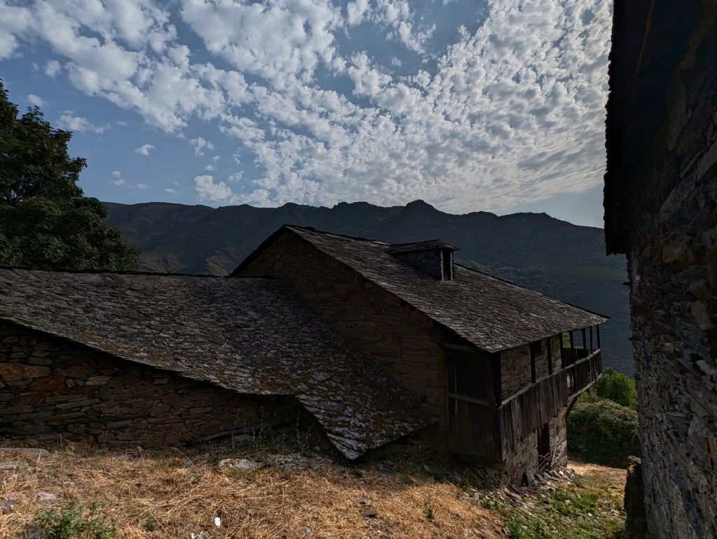 Las casas típicas bercianas del pasado siglo en Penoselo, municipio de Vega de Espinareda, El Bierzo, realzando el espectacular enclave donde se hallan.
