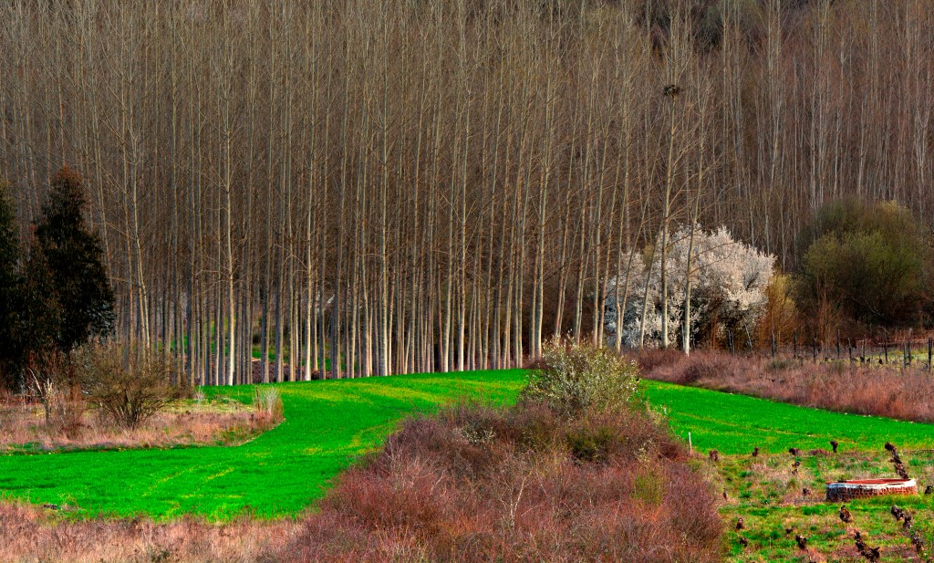 La primavera en una de las numerosas alamedas en tierras del municipio de Camponaraya, El Bierzo.