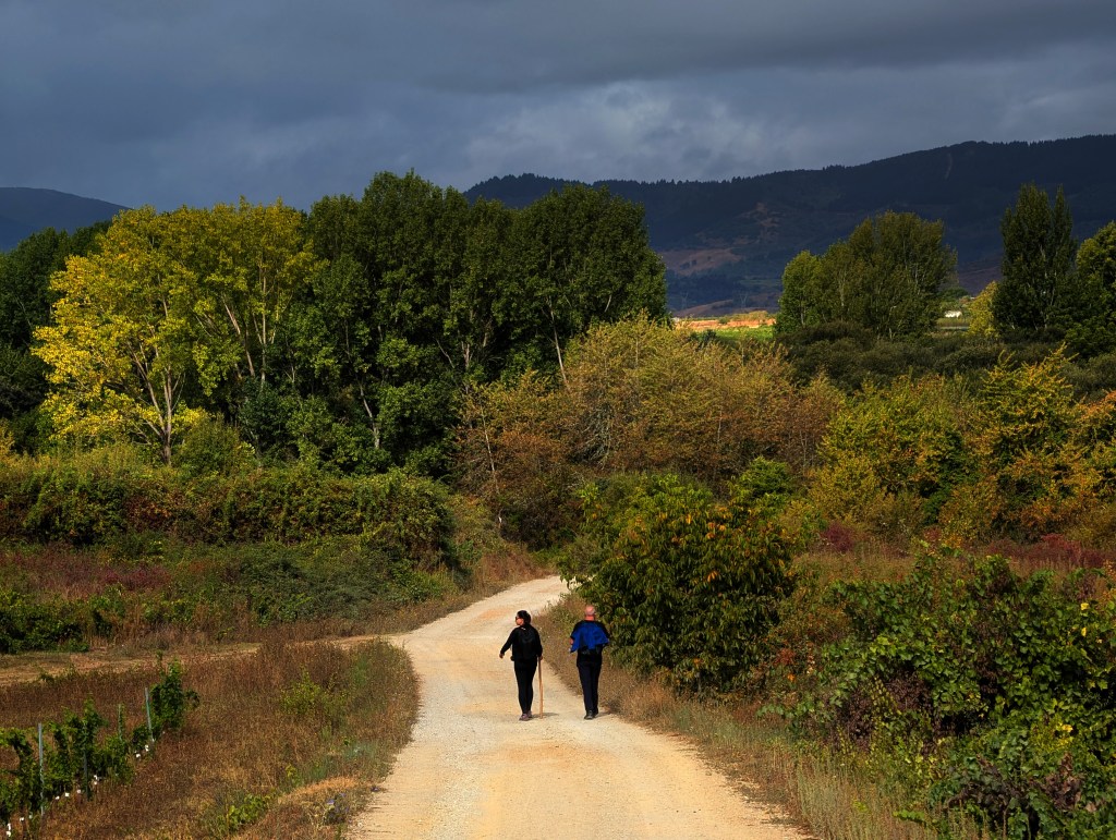 Peregrinos por tierras de Camponaraya, El Bierzo, en dirección a Cacabelos.