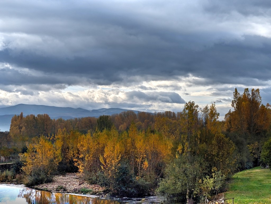 Otoño en Cacabelos desde el puente que cruza el río Cúa, El Bierzo.