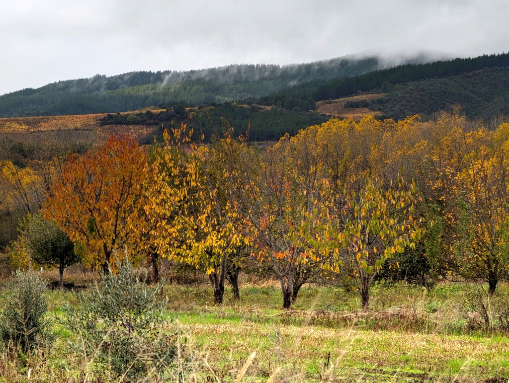 Un cerezo en los últimos días de su ciclo anual en el paraje de La Edrada, Cacabelos, El Bierzo.