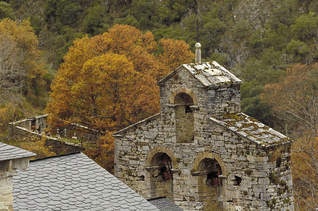 Campanario de la Iglesia Mozárabe de Peñalba de Santiago con su bello y singular cementerio, a un centenar de metros del centro del pueblo.