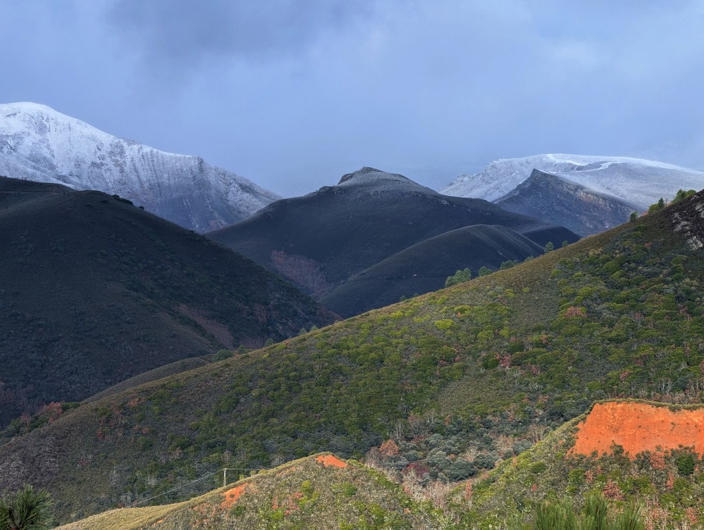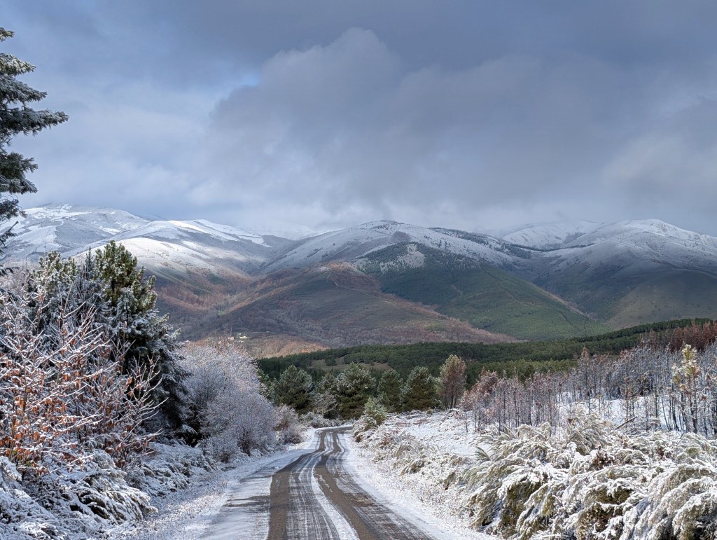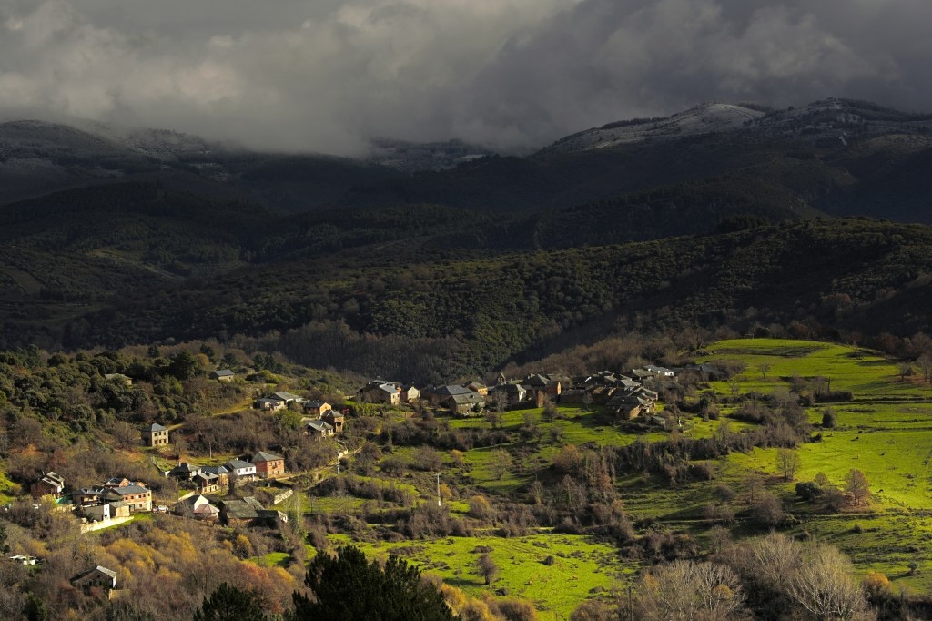 Paradiña, Villafranca del Bierzo, en el inicio del invierno con sus primeras nieves en las montañas más cercanas.