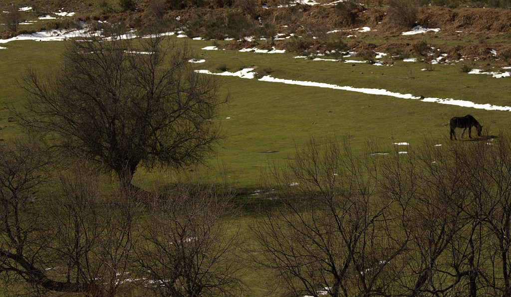 Caballo y castaño sobre un prado próximo a Campo del Agua, Villafranca del Bierzo.