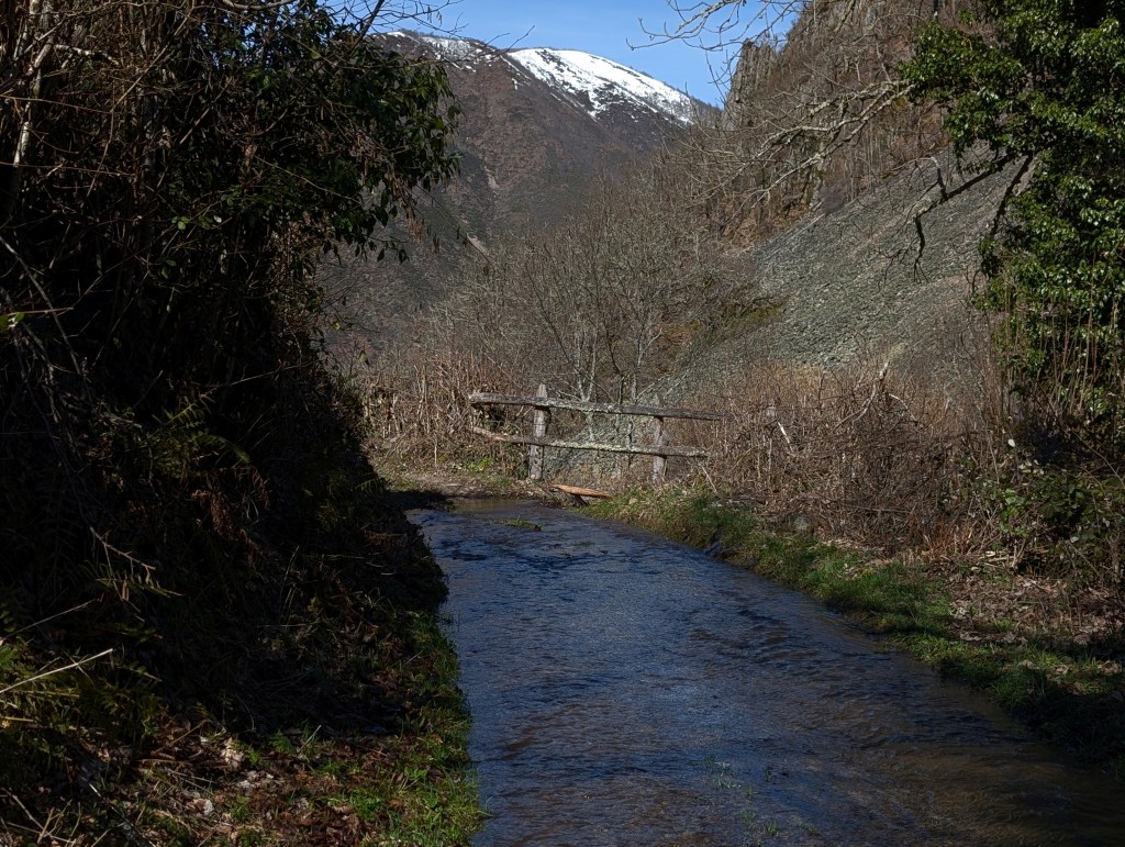 Camino anegado entre Cuevas del Sil y las brañas de La Seita y Zarameo por el deshielo de la nieve acumulada en las montañas cercanas.